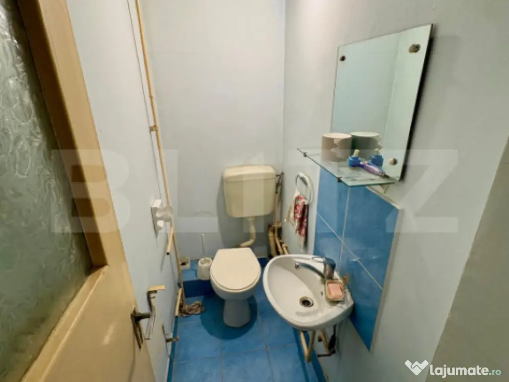 Blitz vă prezintă un apartament cu 3 camere de vânzare în cartierul Tudor, Târgu Mureș, situat într-o zonă foarte liniștită a cartierului, perfectă pentru familii sau pentru cei care caută confort și acces rapid la facilitățile orașului. Locuința se află la parter și oferă o suprafață generoasă de 67 mp. Apartamentul necesită renovare, însă acest lucru reprezintă un avantaj pentru cei care doresc să îl personalizeze complet. Există numeroase opțiuni de recompartimentare, în funcție de preferințele viitorului proprietar. Proprietatea prezintă un potențial extraordinar, ideală atât pentru locuit, cât și pentru investiție, având posibilitatea de a fi amenajată modern și eficient. Detalii principale: -3 camere, 67 mp – variantă foarte spațioasă -Cartier Tudor – zonă foarte liniștită -Parter, acces facil -Necesită renovare -Multiple opțiuni de recompartimentare -Potențial excelent de modernizare -Ideal pentru locuit sau investiție Dacă îți dorești un apartament spațios, într-o zonă liniștită și cu posibilitatea de a-l amenaja exact pe placul tău, această proprietate merită cu siguranță văzută! ???? Vă așteptăm la vizionare alături de echipa Blitz. Cod ofertă / ID BLITZ: P159888 Id intern: P159888 Confort: 1 Tip imobil: Bloc de apartamente Număr Băi: 2