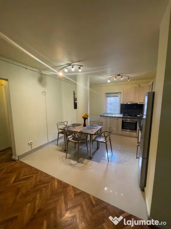-Bucătărie renovată, spațioasă, cu loc pentru luat masa;
