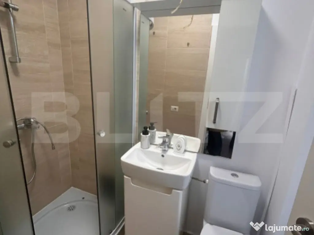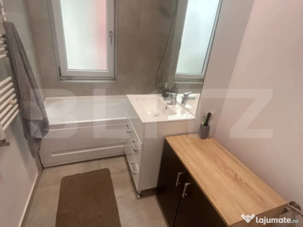 Blitz va propune un apartament situat in zona Calea Martirilor din Timisoara avand o suprafata utila de 71mp. Imobilul este compus din living, bucatarie, 2 dormitoare, 2 bai, o terasa de 27 mp util cu vedere panoramica si un loc de parcare inscris in CF. Apartamentul este finisat cu materiale de inalta calitate si beneficiaza de incalzire prin pardoseala, aparate de aer conditionat, mobilier premium, asa cum se poate vedea in poze. Are acces facil la artera principala, magazine si statii de transport in comun. Cod ofertă / ID BLITZ: P162602 Id intern: P162602 Confort: 1 Tip imobil: Bloc de apartamente Număr Băi: 2