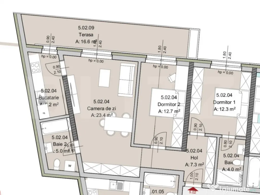 Apartament 3 camere, 71 mp, Terasa 17 mp, Imobil Nou, Zona T