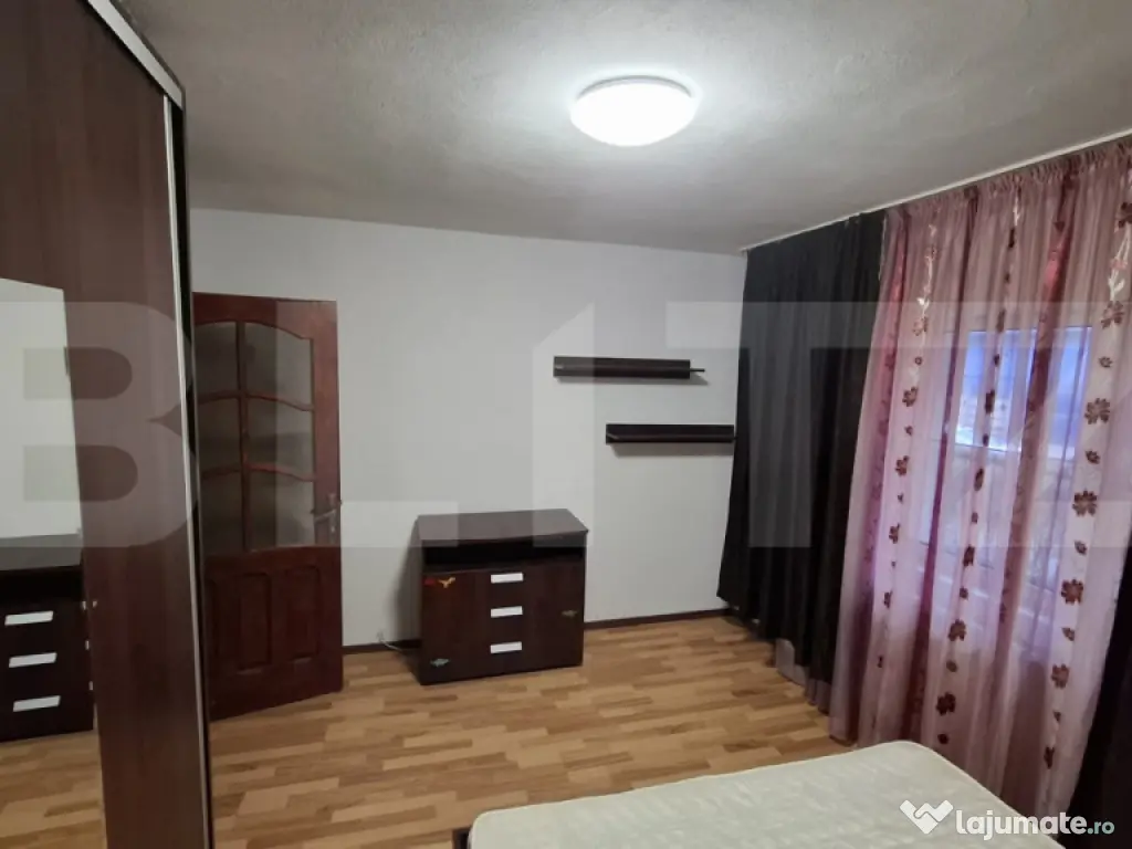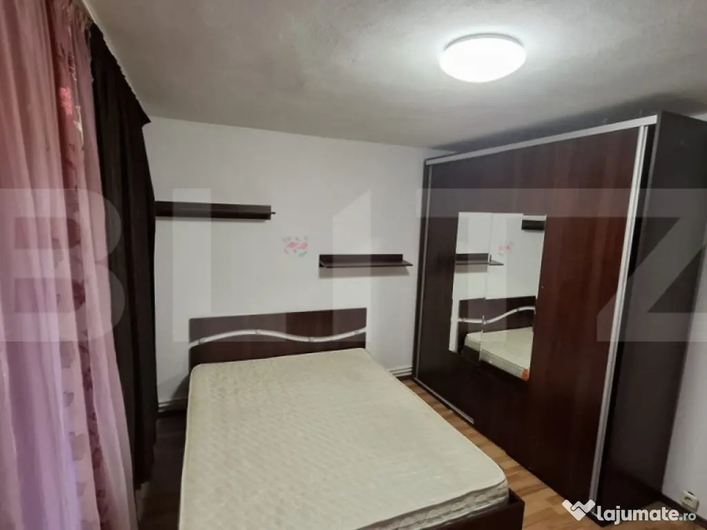 Apartamentul se închiriază complet mobilat și utilat, fiind dotat cu toate electrocasnicele necesare, precum mașină de spălat, frigider, aragaz și TV, astfel încât viitorii chiriași să se poată muta imediat, fără investiții suplimentare.