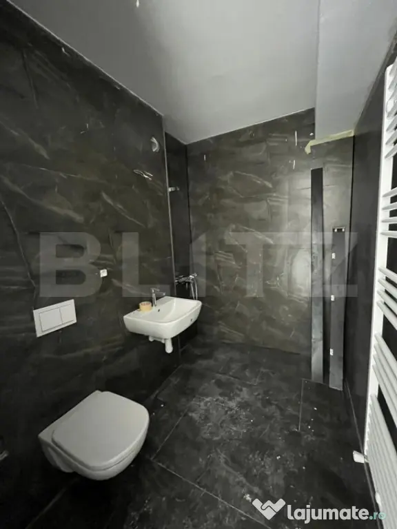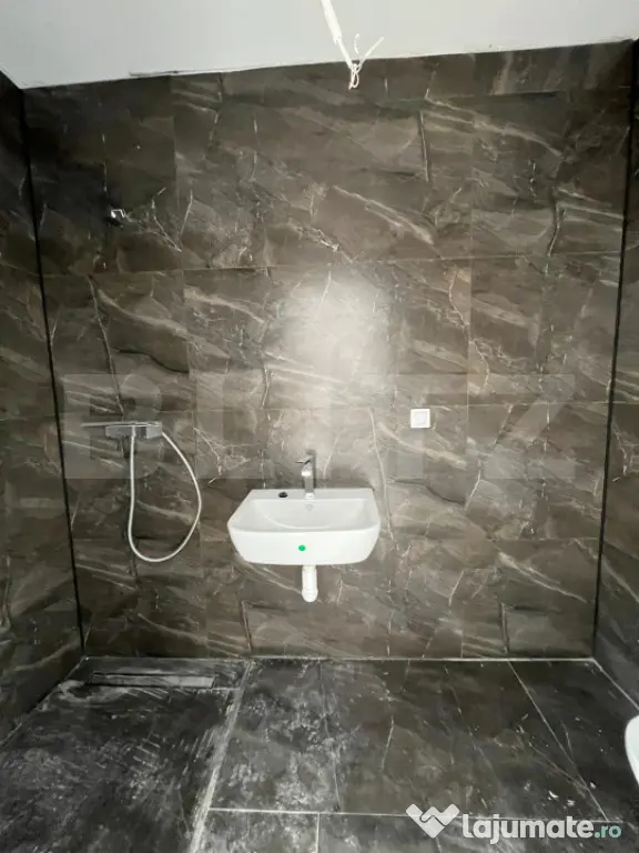 - 2 băi echipate cu dușuri, deja pregătite pentru montajul corpurilor sanitare, inclusiv piesele de mobilier necesare.