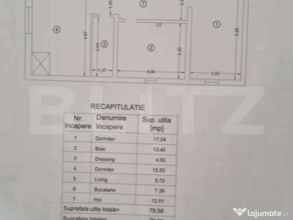 Apartament 3 camere, 80 mp, zona Bucium