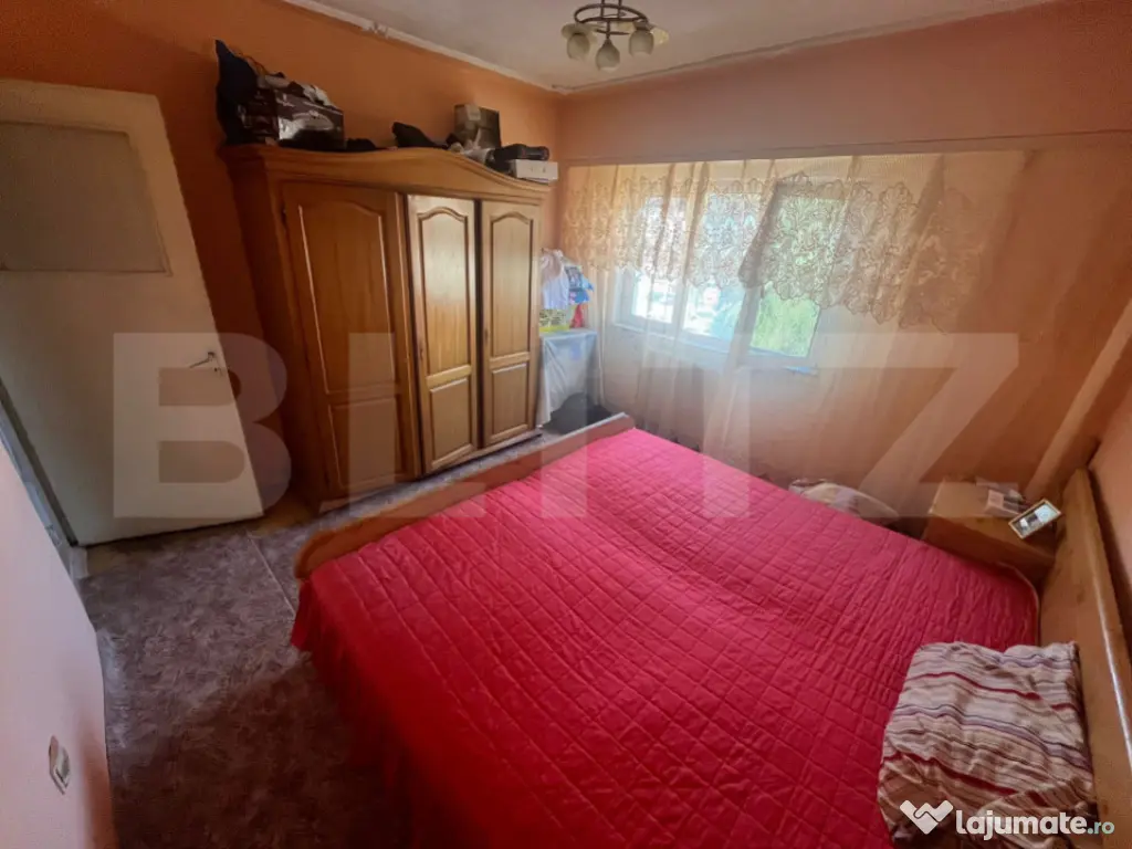 Blitz propune spre vânzare un apartament spațios cu 3 camere, confort 1, situat la etajul 3 al unui imobil bine întreținut, într-o zonă liniștită și accesibilă. Apartamentul are o suprafață utilă de 82 mp și este complet decomandat, oferind o compartimentare practică și eficientă: living generos două dormitoare luminoase două băi (una principală și una de serviciu) două cămări de depozitare balcon închis cu tâmplărie PVC bucătărie separată Locuința dispune de finisaje clasice: parchet, faianță, gresie, lambriuri, și este echipată cu centrală termică proprie și ferestre cu geam termopan. Proprietatea este ideală pentru o familie care caută spațiu, funcționalitate și acces rapid la facilități precum școli, magazine, transport public și zone verzi. Cod ofertă / ID BLITZ: P151966 Id intern: P151966 Confort: 1 Tip imobil: Bloc de apartamente Număr Băi: 1