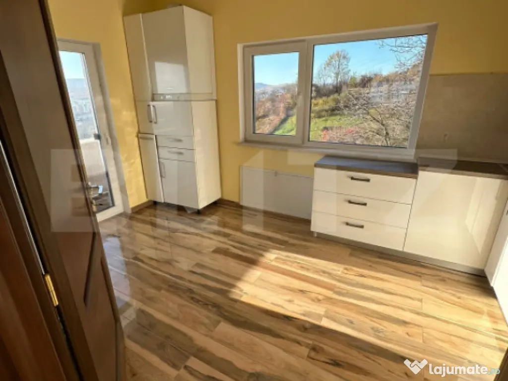 Blitz Imobiliare vă propune spre vânzare un apartament exclusivist situat într-o zonă rezidențială liniștită din Grigorescu, ideal pentru familii care caută confort, intimitate și un stil de viață relaxat. Proprietatea impresionează prin finisaje de calitate și dotări moderne: ✅ 3 camere și 2 dormitoare decomandate ✅ 2 băi complet echipate și 2 balcoane ✅ Terasă de 80 mp cu vedere panoramică asupra orașului ✅ Semineu pentru confort și atmosferă plăcută ✅ Hidroizolație în 3 straturi, centrală proprie, sistem de alarmă ✅ Spațiu luminos și bine compartimentat Loc de parcare inclus în preț Zona rezidențială oferă liniște, siguranță și intimitate, fiind înconjurată de verdeață, case moderne și grădini îngrijite. Este ideală pentru cei care doresc să trăiască într-un cartier exclusivist, departe de agitația urbană, cu priveliști spectaculoase și aer curat. Apartamentul este potrivit atât pentru locuit permanent, cât și ca investiție sigură, cu potențial de închiriere în regim de lux. Blitz Imobiliare vă așteaptă la vizionare pentru a descoperi această locuință unică! Cod ofertă / ID BLITZ: P156815 Id intern: P156815 Confort: 1 Tip imobil: Casă/Vilă Număr Băi: 2