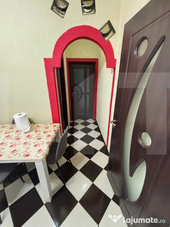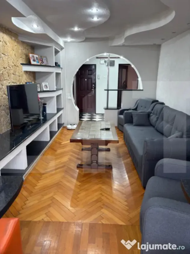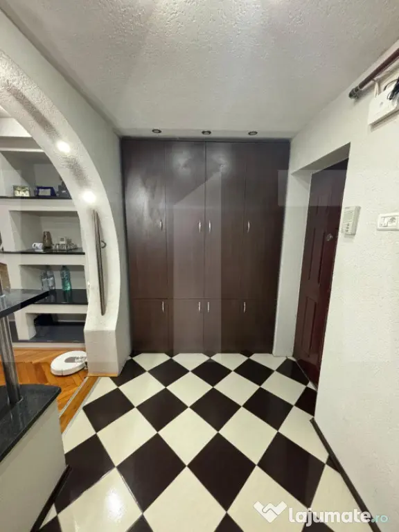 Apartamentul este situat la etajul 4 din 4, oferind un plus de intimitate și liniște. La intrare regăsim un dulap practic pentru haine și pantofi, iar interiorul este finisat cu materiale moderne, cu accent pe detalii și funcționalitate. Iluminatul este realizat cu spoturi LED, contribuind la un ambient elegant și contemporan.