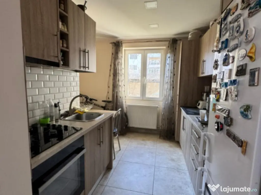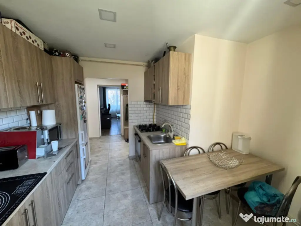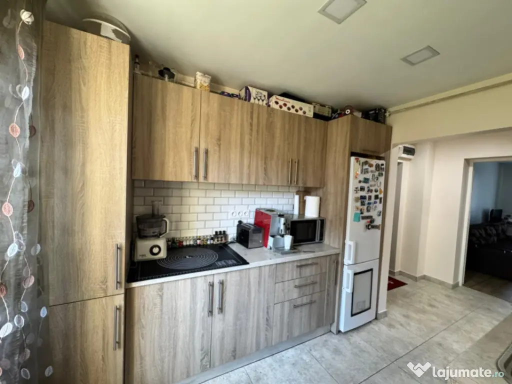 Un punct forte al proprietății este bucătăria mare și luminoasă, perfectă pentru cei care apreciază un spațiu generos pentru gătit și pentru momentele petrecute în familie. Aceasta este dotată cu plită pe gaz, cuptor electric și frigider.