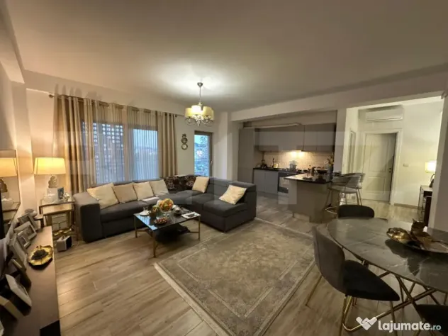 Proprietatea se vinde complet mobilată și utilată, fiind pusă în valoare de finisaje și dotări premium, precum tâmplăria interioară Pinum, obiectele sanitare din Italia, plintele și corpurile de iluminat cu accente aurii, detalii care oferă un plus de rafinament și eleganță întregului spațiu.