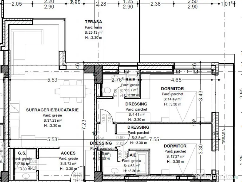 Apartament 3 camere, 93,5 mp, terasă 32,5 mp, zona centrala