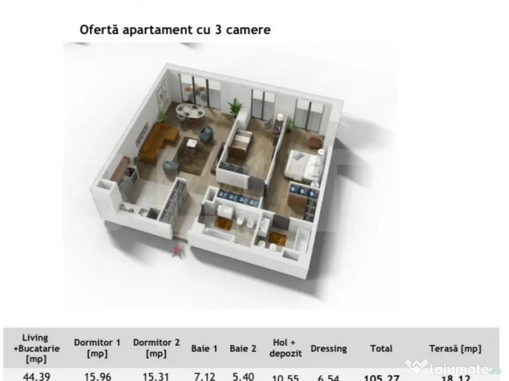 Blitz va propune spre vanzare un apartament de 3 camere, 97 mp , etaj intermediar, in cel mai EXCLUSIVIST ansamblu din Cluj, zona Centrala . Apartamentul are o suprafata utila de 97 mp si este compartimentat astfel: Living cu bucatarie open space, doua dormitoare, doua bai, dressing si un balcon de 14 mp. Apartamentul dispune de orientare Est si are o priveliste superba asupra orasului. Imobilul se afla intr-o zona cu acces facil spre mijloace de transport, scoli, mall, universitati , parcuri cat si spre centrul orasului. Apartamentul se vinde la stadiul de semifinisat. La parterul ansamblului va fi o zona comerciala , care o sa cuprinda o gama de activitati ce faciliteaza indeplinirea activitatilor de rutina zilnica. Exista posibilitatea de achizitie a unei parcari subterane la pretul de 25.000 euro +TVA Pentru a afla cat mai multe informatii despre acest ansamblu, va asteptam sa il vizionam impreuna. Preturile nu includ TVA. Cod ofertă / ID BLITZ: P102598 Id intern: P102598 Confort: 1 Tip imobil: Bloc de apartamente Număr Băi: 2 Nr. locuri parcare: 1