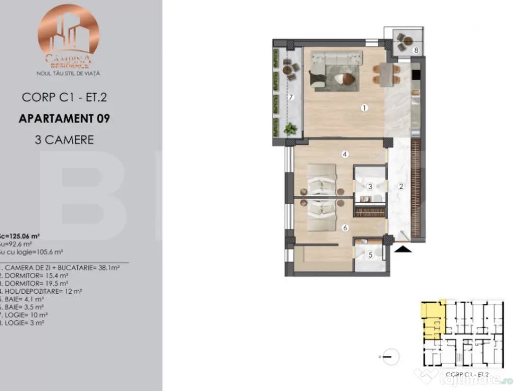 BLITZ va ofera stre vanzare in ansamblul rezidential CAMPINA RESIDENCE Apartament 3 Camere - Corp C1 Spațios • Luminos • Modern 125.06 Suprafață utilă cu logie 3 camere,etaj 2 FINISAJE PREMIUM Parchet premium clasa 33 Gresie și faianță Marazzi Obiecte sanitare Grohe Uși Pinum cu închidere silențioasă CONFORT TERMIC Încălzire în pardoseală Centrală termică în condensație Termoizolație premium Geamuri tripan Low-E Cod ofertă / ID BLITZ: P159652 Id intern: P159652 Confort: 1 Tip imobil: Bloc de apartamente Număr Băi: 2
