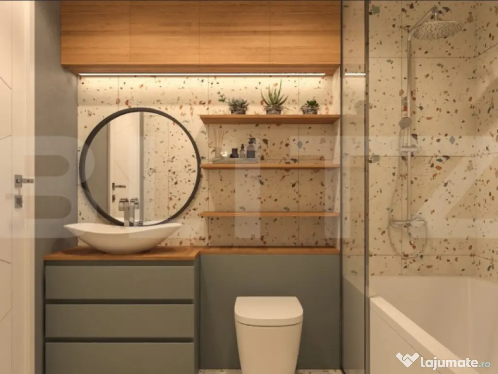 Blitz ofera spre vanzare apartament de 3 camere, intr-un ansamblu rezidential nou, cu o suprafata utila de 52 mp, compus din living, bucatarie, 2 dormitoare, 1 dresing, 1 baie, hol si 2 balcoane. In incinta ansamblului vor exista spatii comerciale, parc si gradinita. Apartamentele se predau la stadiul de semifinisat, iar preturile nu includ Tva. Exista si posibilitatea de a achizitiona 1 loc de parcare exterior la pretul de 5000 euro sau subteran la pretul de 7000 euro. Cod ofertă / ID BLITZ: P130863 Id intern: P130863 Confort: 1 Tip imobil: Bloc de apartamente Număr Băi: 1