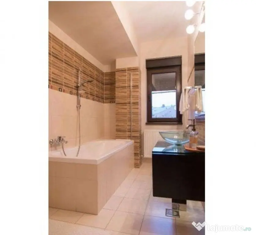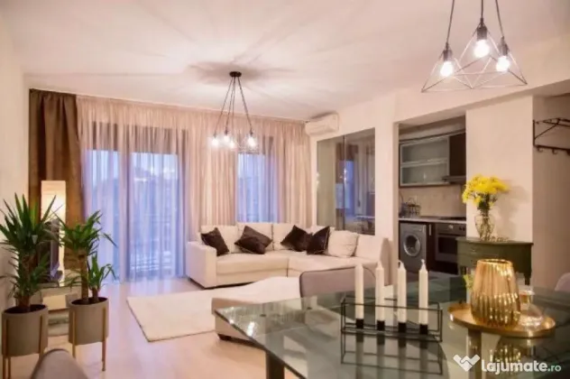 Intr-un Bloc Nou,se inchiriaza apartament de 3 camere,decom,conf.I,situat la et.1,mobilat utilat complet modern,(LUX)cu 2 gr.sanitare,balcon generos,bonus Parcare subterana.