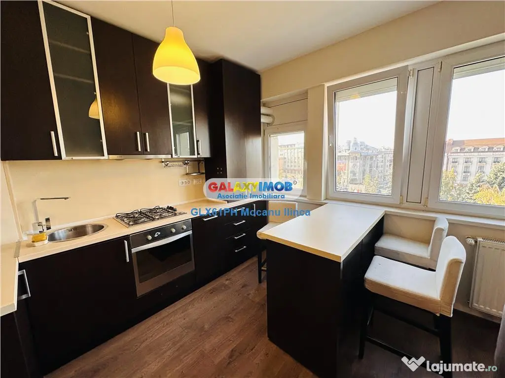 Inchiriere apartament 3 camere, Ploiesti, zona Ultracentrala, situat la etajul 4 al unui bloc de locuinte cu structura P 6E, avand ca vecinatati si puncte de interes: Mall Mercur, Casa Alba, Hotel Prahova, restaurante, magazine, scoli, licee, statii pentru mijloace de transport in comun. Zona 0 a orasului! Blocul dispune de lift. Apartamentul este decomandat, are suprafata de 68 mp si este compartimentat in living open space cu bucataria, 2 dormitoare, 2 grupuri sanitare, hol. Finisaje: gresie, faianta, parchet, tamplarie pvc cu geam termopan, usi interioare din panel, usa exterioara metalica, jaluzele exterioare din aluminiu. Incalzirea se realizeaza prin centrala termica proprie, iar climatizarea prin aparat de aer conditionat. Apartamentul se inchiriaza mobilat si utilat cu pat dublu, pat single, canapea extensibila, spatii de depozitare, mobilier de bucatarie, plita, cuptor, hota, frigider, masina de spalat rufe, televizor cu ecran plat. Costul chiriei este de 519 euro lunar, o luna in avans o luna garantie. Comision: 50%. Informatii eficienta energetica: Clasa energetica: B Consumul de energie primara: Indicele de emisii echivalent CO2: Consum de energie din surse regenerabile: Confort: 1 Tip imobil: Bloc de apartamente Număr Băi: 2