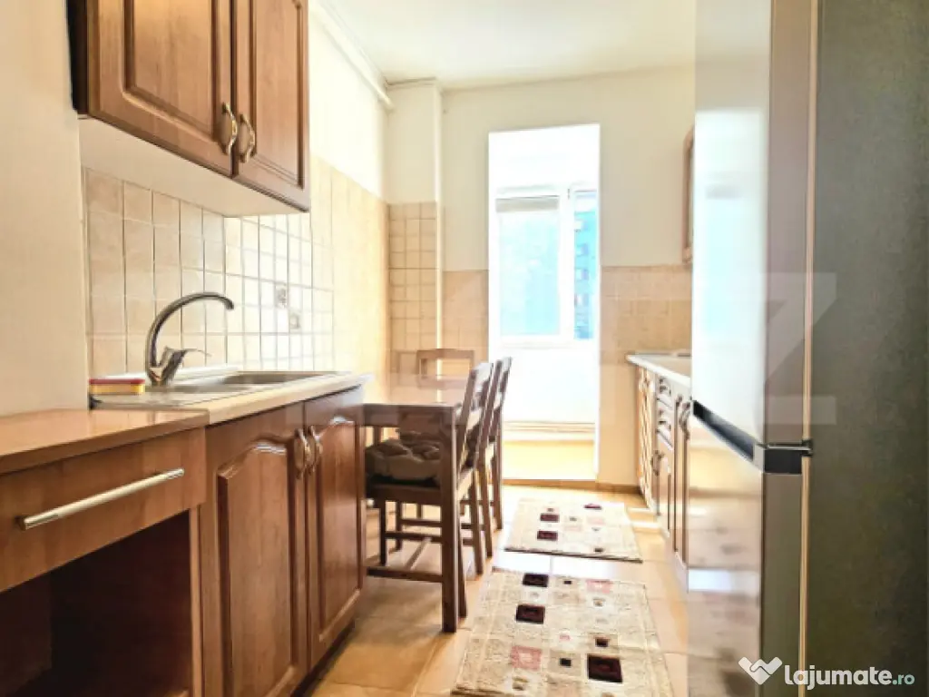 Blitz vă prezintă pentru închiriere un apartament cu 3 camere, situat la parter înalt într-un imobil cu regim de înălțime P+10, amplasat aproape de principalele zone de atracție ale orașului. Apartamentul este decomandat și dispune de o suprafață utilă de 74 mp. Blocul este izolat termic, oferind un plus de eficiență energetică. Locuința este compartimentată în: -2 dormitoare, -un living spațios cu logie, -bucătărie complet mobilată și utilată, -baie dotată cu duș -o debara generoasă pentru depozitare. Imobilul beneficiază de 2 balcoane tip logie, unul in living si unul in bucatarie, și include o boxă la subsol, trecută în CF. În prezent, încălzirea este realizată prin sistemul Colterm, însă din această iarnă vă veți bucura de confortul unei centrale termice proprii cu încălzire pe calorifere. Apartamentul va fi disponibil începând cu data de 1 Aprilie, momentan fiind în proces de igienizare și se realizează câteva îmbunătățiri. Vă așteptăm la o vizonare! Cod ofertă / ID BLITZ: P167330 Id intern: P167330 Confort: 1 Tip imobil: Bloc de apartamente Număr Băi: 1