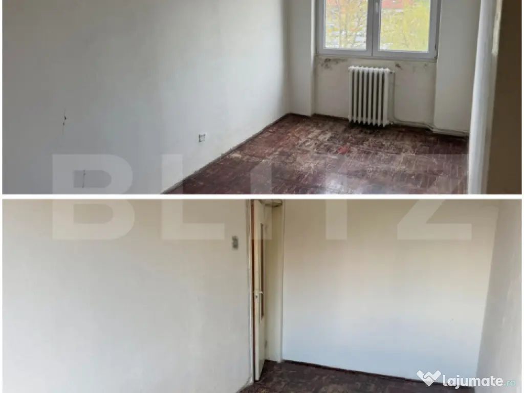 Blitz vă propune spre vânzare un apartament cu 3 camere in cartier Iernuteni, o oportunitate excelentă pentru cei care își doresc să-și personalizeze locuința de la zero. Situat la etajul 4 din 4, apartamentul necesită renovare completă, oferind libertatea de a-l amenaja exact după propriul gust și stil. Imobilul beneficiază de o poziționare plăcută, cu vedere spre Biserica Ortodoxă și grădinița din cartier, într-o zonă liniștită și bine conectată. Prețul atractiv îl face ideal atât pentru locuință proprie, cât și pentru investiție. Blocul a fost hidroizolat, apartamentul nu prezinta infiltratii la tavan. Dacă îți dorești un apartament cu potențial, pe care să îl transformi în „acasă”, te invităm la vizionare! Pentru mai multe detalii sau programări, nu ezitați să ne contactați. Cod ofertă / ID BLITZ: P170216 Id intern: P170216 Confort: 1 Tip imobil: Bloc de apartamente Număr Băi: 1
