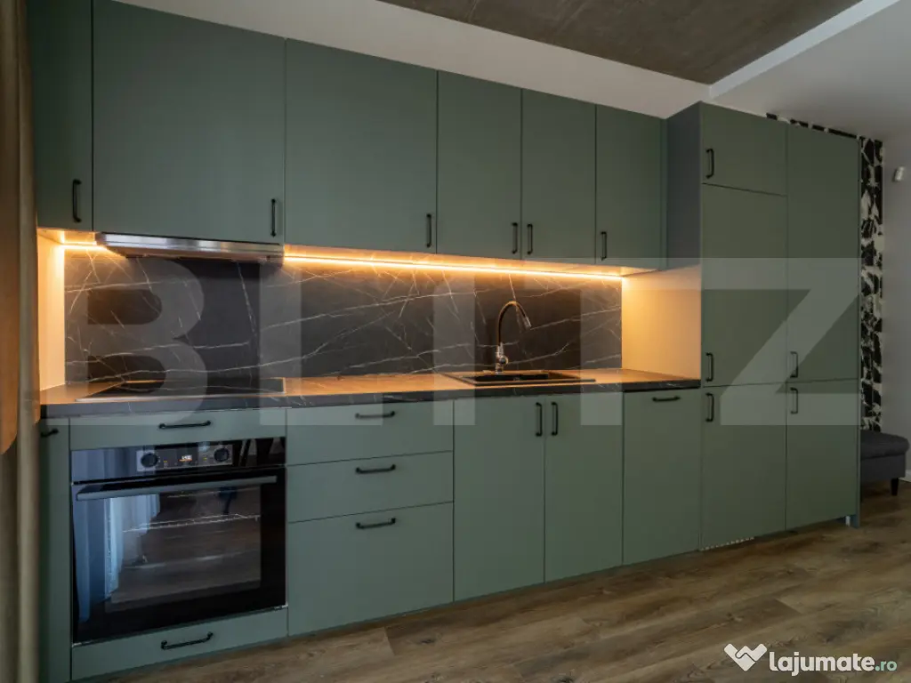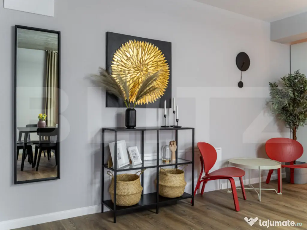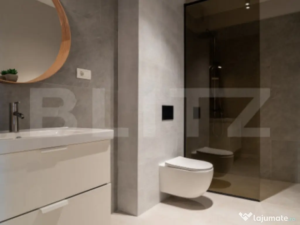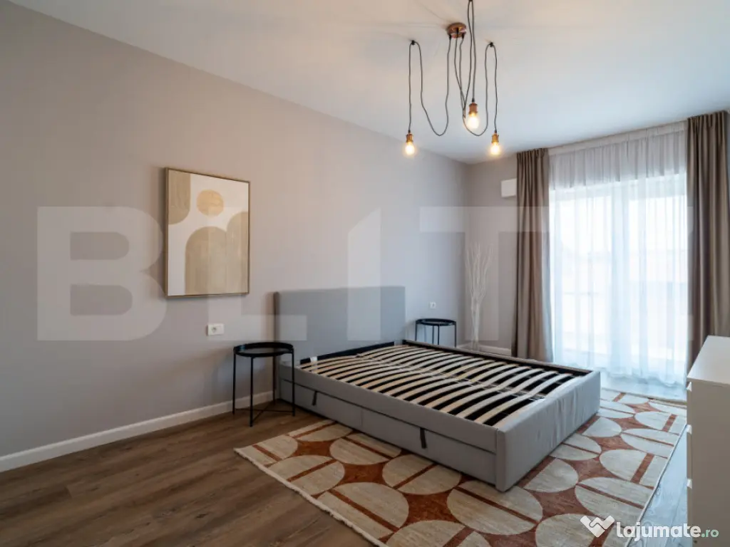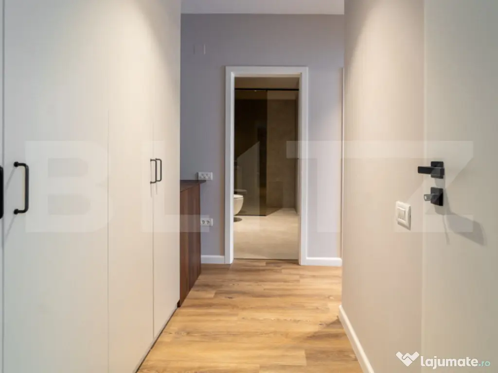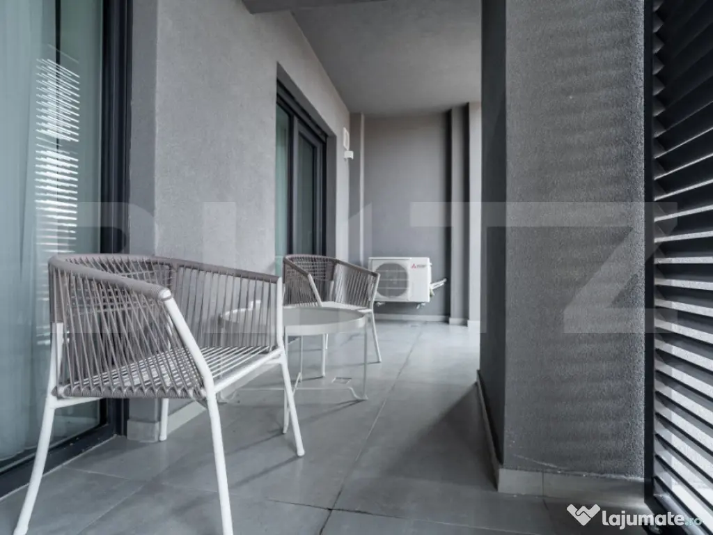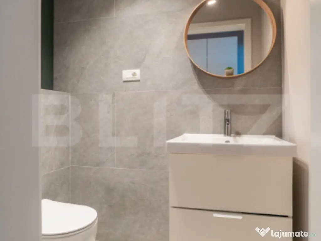 Blitz oferă spre închiriere un apartament elegant de 3 camere, cu suprafață utilă de 70 mp și terasă de 11 mp, orientat sudic, situat la etajul 2 în exclusivistul EAS Residence Clujului – primul proiect „verde” din Oradea, lângă Crișul Repede și vis-a-vis de Kaufland. Apartamentul dispune de 2 băi moderne, finisaje premium, sistem de ventilație descentralizat, încălzire și răcire în pardoseală, vata bazaltică de 16 cm în exterior, panouri fotovoltaice și pompa de căldură. Bucătăria este complet echipată cu plită pe inducție, cuptor electric și sistem integrat de filtrare a apei Nazzuro. Zona este liniștită, cu acces rapid la Aquapark Nymphea și Centrul Civic. Parcare acoperită disponibilă la 45 €/lună TVA inclus. Cod ofertă / ID BLITZ: P167050 Id intern: P167050 Confort: 1 Tip imobil: Bloc de apartamente Număr Băi: 2