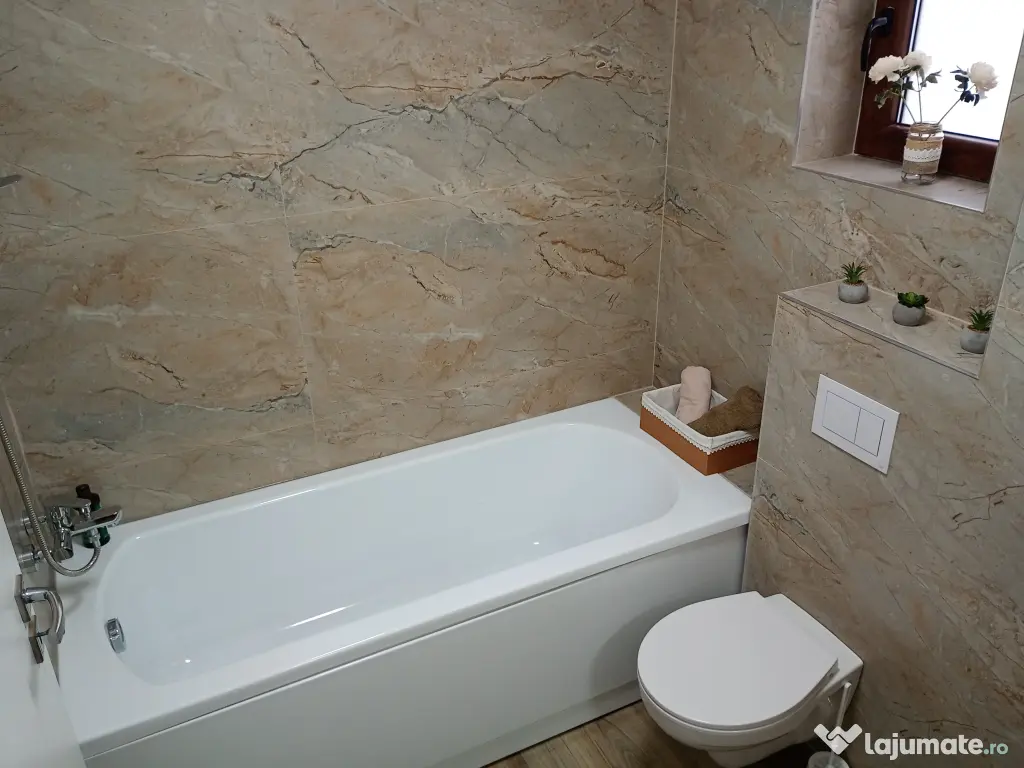- baie cu cadă și geam de aerisire