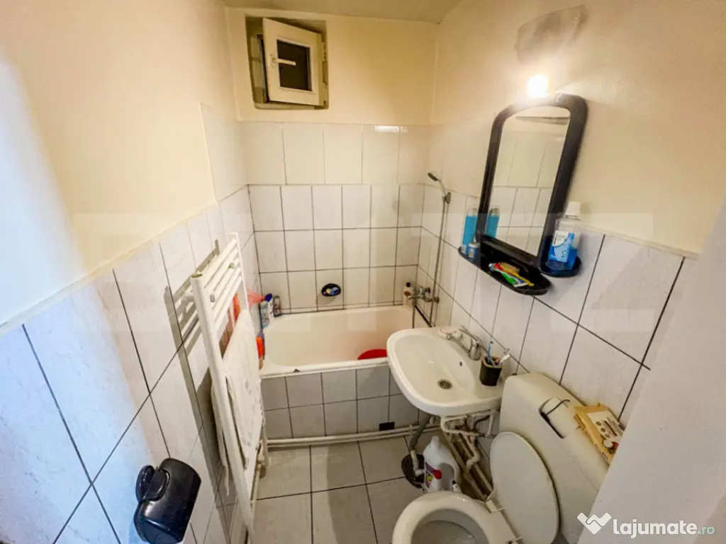 o baie cu geam, ideală pentru aerisire naturală,