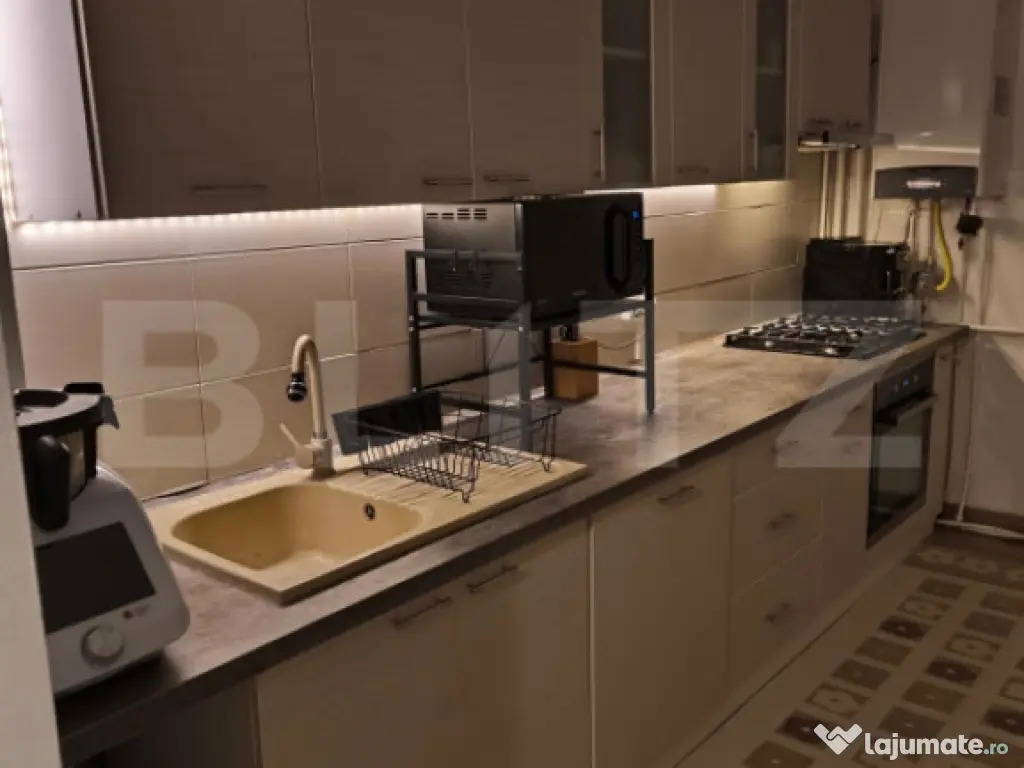 Apartament 3 camere decomandat, 2 băi, etaj 1, mobilat-util