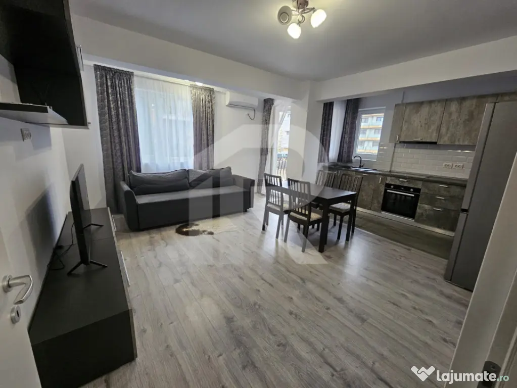 Zona de living este luminoasă și deschisă, integrată armonios cu bucătăria, complet mobilată și utilată, oferind un spațiu perfect pentru relaxare sau socializare. Dormitoarele sunt bine proporționate, iar unul dintre ele poate fi adaptat ușor ca birou sau cameră pentru copil.