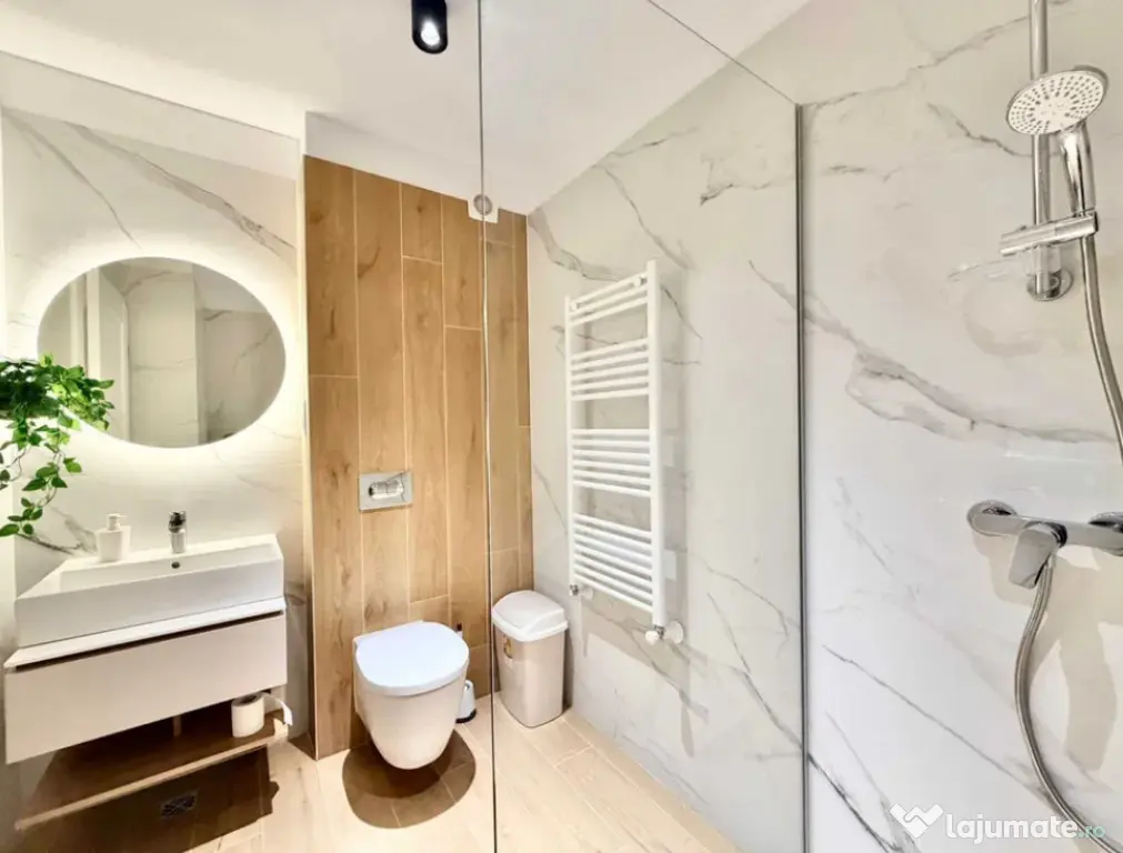 Proprietate disponibila prin Agentia Colosseum Invest. Iti propunem spre vanzare un apartament cu 3 camere, decomandat, situat in zona Racadau , intr-un imobil construit in anul 2024, disponibil la etajul 8 din 10 nivele, cu o suprafata utila de 76 mp. Imobilul ofera toata intimitatea si confortul unei locuinte extrem de primitoare datorita compartimentarii si dispune de multiple imbunatatiri, cum ar fi: centrala termica, usa metalica, gresie, parchet, termopane integral. Proprietatea se vinde mobilata si utilata si dispune, de asemenea, de un loc de parcare la pretul de 15.000 euro . Imobilul este pozitionat intr-o zona linistita, cu multiple facilitati precum: numeroase centre comerciale, farmacii, mijloace de transport in comun, institutii de invatamant. Se accepta plata prin credit.
