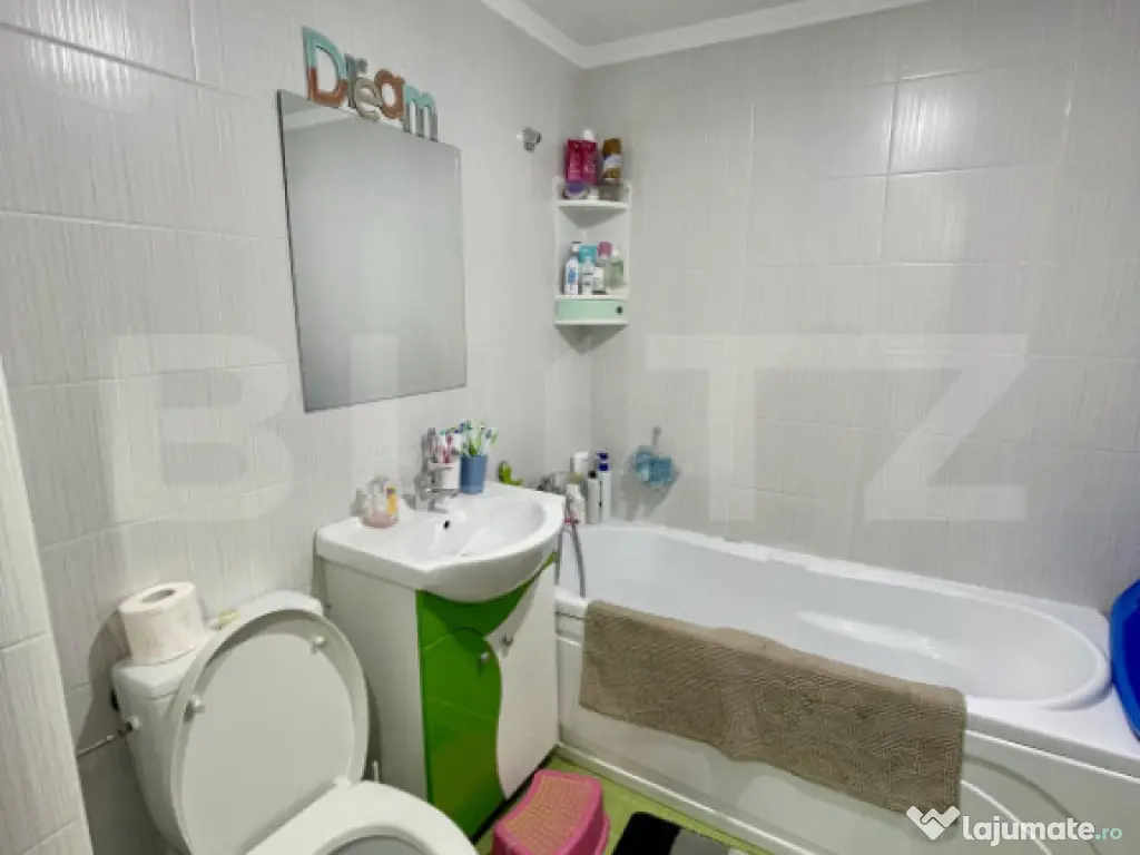 Blitz vă propune spre vânzare un apartament cu 3 camere, situat la etajul 3 din 4 al unui imobil din zona Burdujeni. Compartimentare decomandată, compusă din: - două dormitoare - living spațios - bucătărie - baie - 2 balcoane și hol. Apartamentul se vinde mobilat și utilat, dispune de centrală termică proprie și calorifere, este izolat termic exterior și beneficiază de dublă orientare – Sud-Est și Nord. În zonă există locuri de parcare la liber, iar accesul este facil către magazine, școli și grădinițe. Pentru mai multe detalii, sau pentru a programa o vizionare, contactați-ne! Cod ofertă / ID BLITZ: P155689 Id intern: P155689 Confort: 1 Tip imobil: Bloc de apartamente Număr Băi: 1