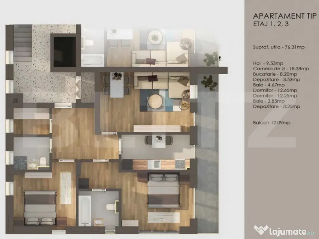 BLITZ propune spre vânzare un apartament spațios cu 3 camere, situat la etaj intermediar (1-3), într-un bloc nou și modern din zona Tractorul – cea mai dezvoltată și dorită zonă rezidențială din Brașov. Cu o suprafață utilă generoasă de 76 mp, completată de un balcon de 12 mp, acest apartament oferă un cadru ideal pentru o familie sau pentru cei care caută confort și calitate într-un spațiu modern. Locuința beneficiază de încălzire în pardoseală, finisaje premium și multă lumină naturală, iar compartimentarea este practică și bine gândită. ???? Detalii cheie: Suprafață utilă: 76 mp Balcon: 12 mp Etaj: 1 / 2 / 3 (în funcție de disponibilitate) Camere: 3 Băi: 2 Încălzire în pardoseală Compartimentare: living cu bucătărie open-space, 2 dormitoare, 2 băi, balcon Posibilitate achiziție loc de parcare: 9.000 EUR Apartamentul este situat într-o zonă excelentă, cu acces rapid la mall, supermarketuri, școli, restaurante, parcuri și mijloace de transport – o investiție ideală atât pentru locuință personală, cât și pentru închiriere. ???? Contactează-ne pentru detalii suplimentare și programarea unei vizionări! Cod ofertă / ID BLITZ: P148086 Id intern: P148086 Confort: 1 Tip imobil: Bloc de apartamente Număr Băi: 2