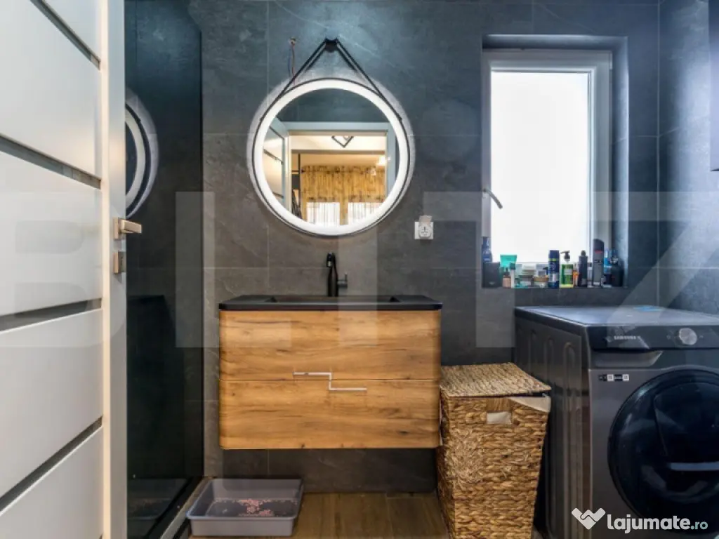 Vă propunem spre vânzare un apartament modern cu 3 camere, situat într-o construcție nouă din Baciu, într-o zonă liniștită, ideală pentru locuit sau investiție. Locuința are o suprafață utilă de 52,20 mp, la care se adaugă: ???? grădină proprie de 27 mp ???? balcon generos de 8 mp cu panoramă deosebită ✨ Dotări & finisaje: Mobilat și utilat LUX, totul nou, la cheie Încălzire în pardoseală – confort sporit în orice sezon Bucătărie complet echipată, inclusiv mașină de spălat vase Geam la baie – lumină naturală și ventilație Compartimentare eficientă, spațiu bine optimizat ???? Extra beneficii: Parcare subterană (cu CF) Boxă de depozitare ~5 mp (cu CF) ???? toate înscrise în cartea funciară ???? Avantaje locație: Zonă foarte liniștită, fără trafic intens Acces rapid către Cluj-Napoca Cadru ideal pentru familii sau pentru închiriere ???? Un apartament complet, modern și eficient, perfect pentru cei care caută confort, liniște și o proprietate pregătită pentru mutare imediată. ???? Pentru detalii sau vizionare, nu ezitați să mă contactați. Cod ofertă / ID BLITZ: P170354 Id intern: P170354 Confort: 1 Tip imobil: Bloc de apartamente Număr Băi: 1