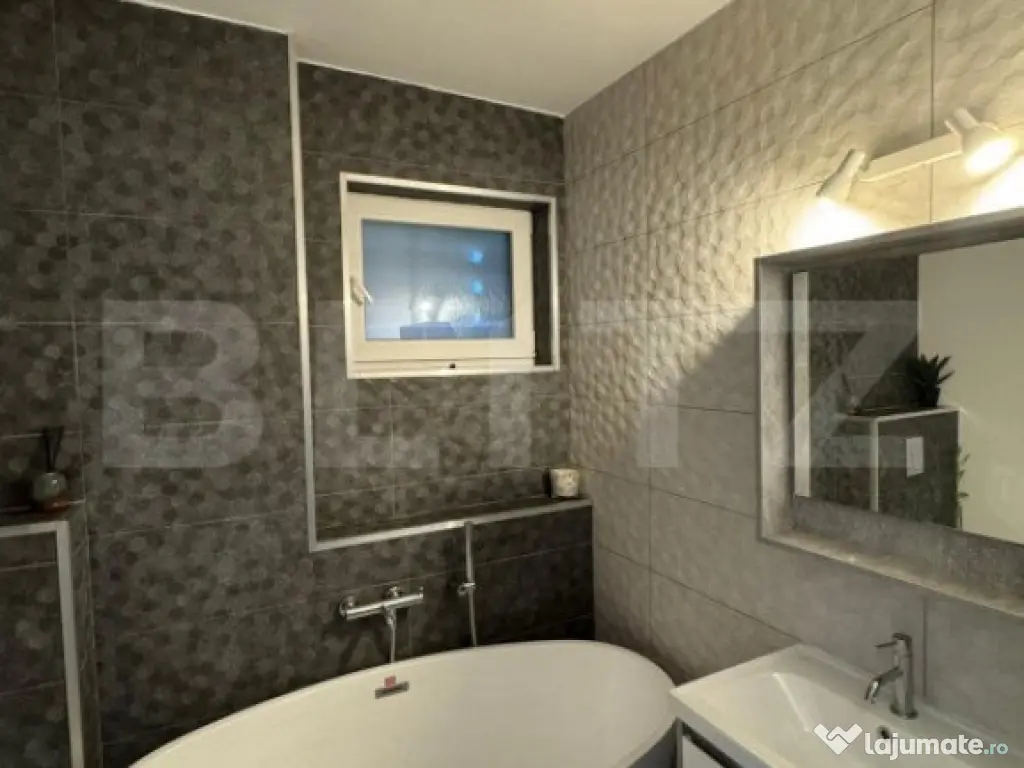 Blitz va propune spre vanzare un apartament de 3 camere, semidecomandat, aflat la etajul 1 dintr-un imobil de 10 etaje dotat cu lift, intr-unul dintre cele mai cautate ansambluri rezidentiale din Cluj-Napoca. Acesta are o suprafata utila de 74,54 mp compartimentat astfel: 2 dormitoare, 2 bai, living cu bucatarie openspace, 2 holuri si o terasa generoasa de 21,15 mp ideala pentru crearea unui spatiu de recreere. Apartamentul este complet mobilat și utilat, oferind un spațiu elegant și confortabil, perfect pentru cei care caută intimitate și un stil de viață premium. In pretul afisat este inlusa o parcare subterana de 16,05 mp, spațios și ușor accesibil si o boxa închisă la subsol, dotată cu priză și lumină. Este echipat cu centrală termică proprie cu încălzire prin calorifere, mașină de spălat rufe, cuptor electric, plită cu inducție și hotă, frigider încorporat și mașină de spălat vase si aer conditionat in living si in dormitorul matrimonial. Pentru mai multe detalii si stabilirea unei vizionari nu ezitati sa ne contactati! Cod ofertă / ID BLITZ: P135918 Id intern: P135918 Confort: 1 Tip imobil: Bloc de apartamente Număr Băi: 2 Nr. locuri parcare: 1