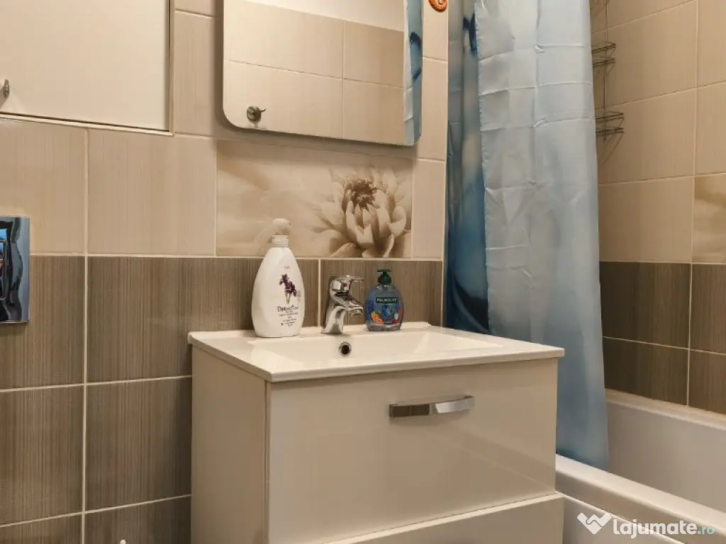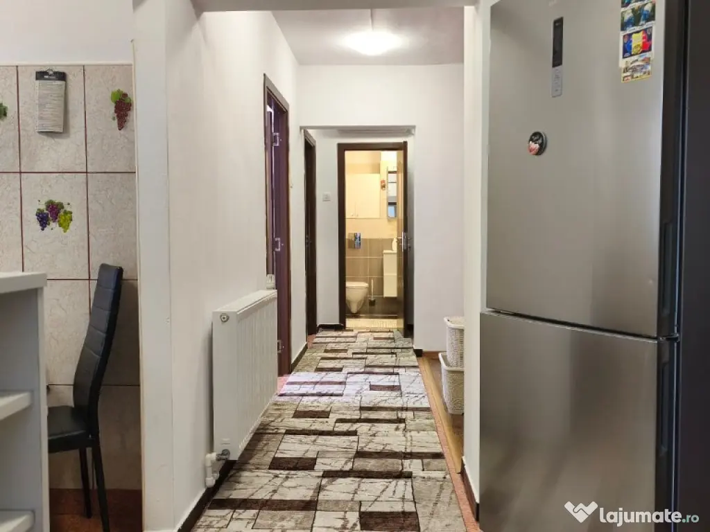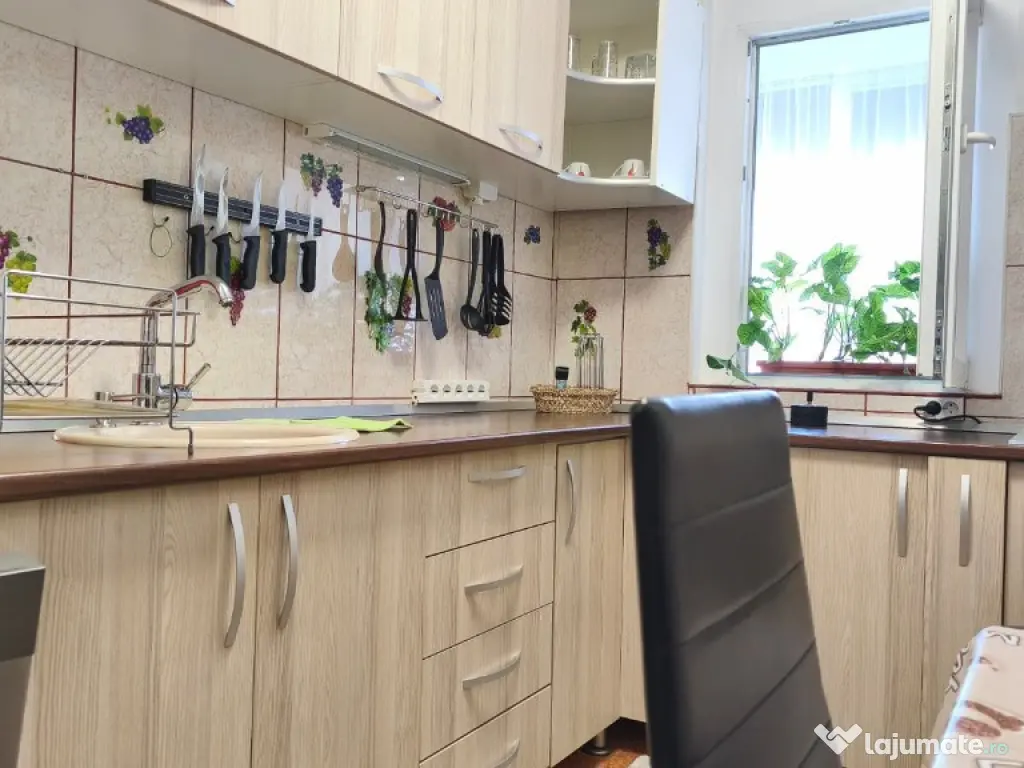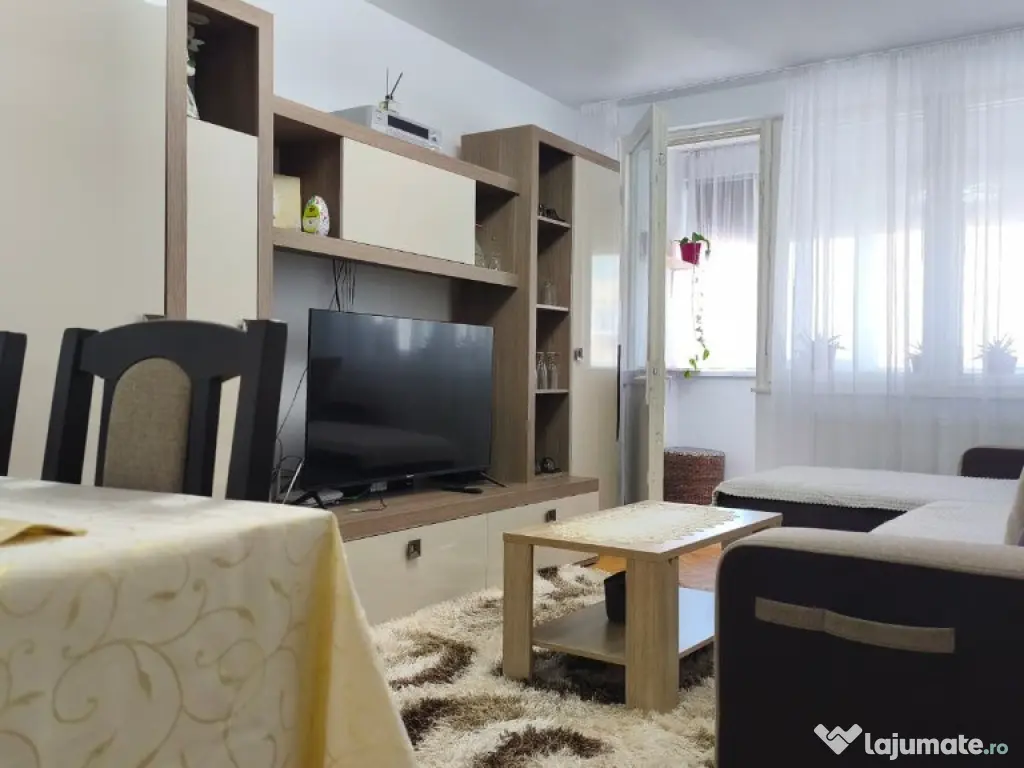 Va propunem spre inchiriere apartament 3 camere in Deva, zona Iuliu Maniu Detalii imobil: – etaj 8 in bloc de 10 nivele – suprafata 70 mp – decomandat – bucatarie open space cu holul – balcon inchis – usa metalica – usi interioare schimbate – ferestre termopan cu tamplarie PVC – parchet clasic bine intretinut, gresie, faianta – centrala termica – renovat integral – mobilat, utilat la cheie – ocupabil imediat Pret: 600 euro/luna + 1 luna garantie . Comision agentie: 50% din prima chirie, pentru chirias. Tel: 0770 362 979 (Rebecca) sau 0745 398 949 (Marcela) Ai vreo întrebare despre această proprietate? Nu ezita să ne contactezi telefonic sau: Adresa agentiei New Imob Deva: Pe centrul pietonal (prin gangul aflat intre cafeneaua Cotton si La Librarie, vis a vis de Fried Chiken- primul birou in partea stanga la parter) Site: newimob.ro Confort: 1 Tip imobil: Bloc de apartamente