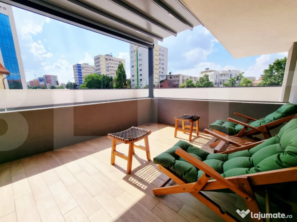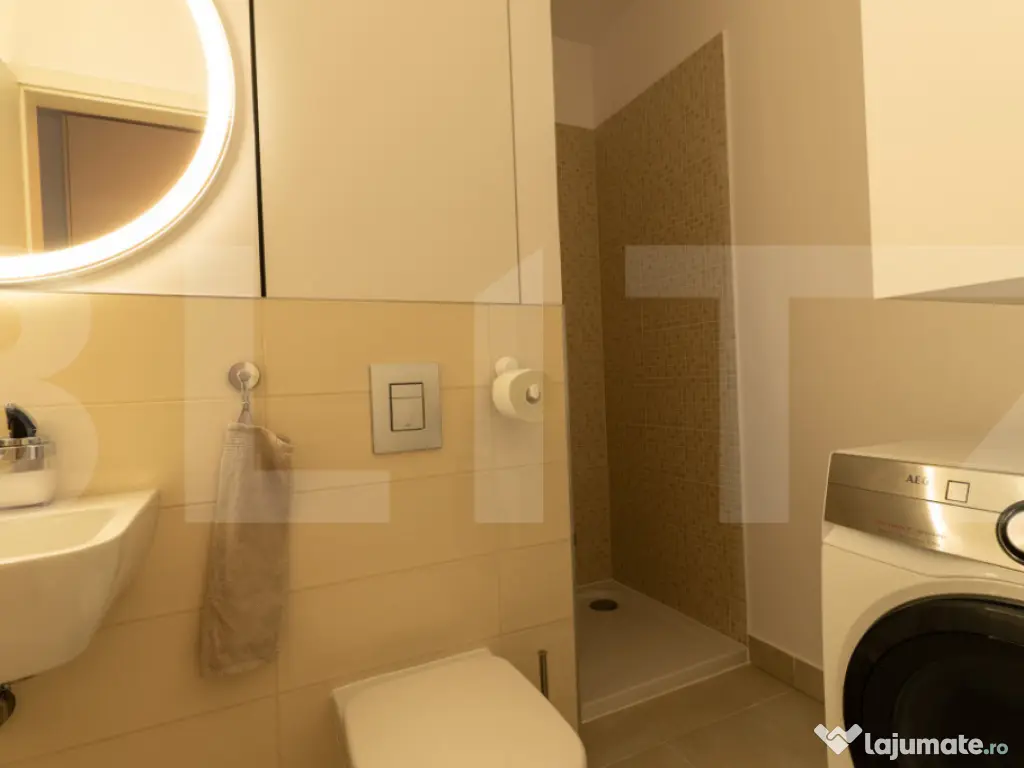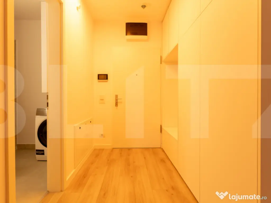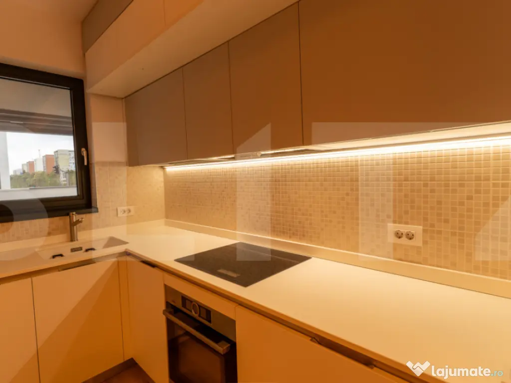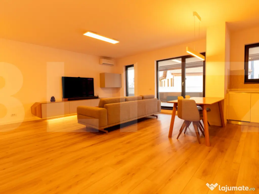 Blitz va propune spre vanzare un apartament modern, complet mobilat și utilat, cu finisaje premium și tehnologie smart integrată: încălzire în pardoseală zonală, aer condiționat, rulouri și pergolă controlabile din aplicație.