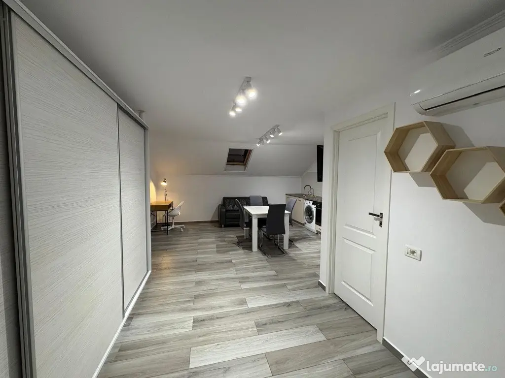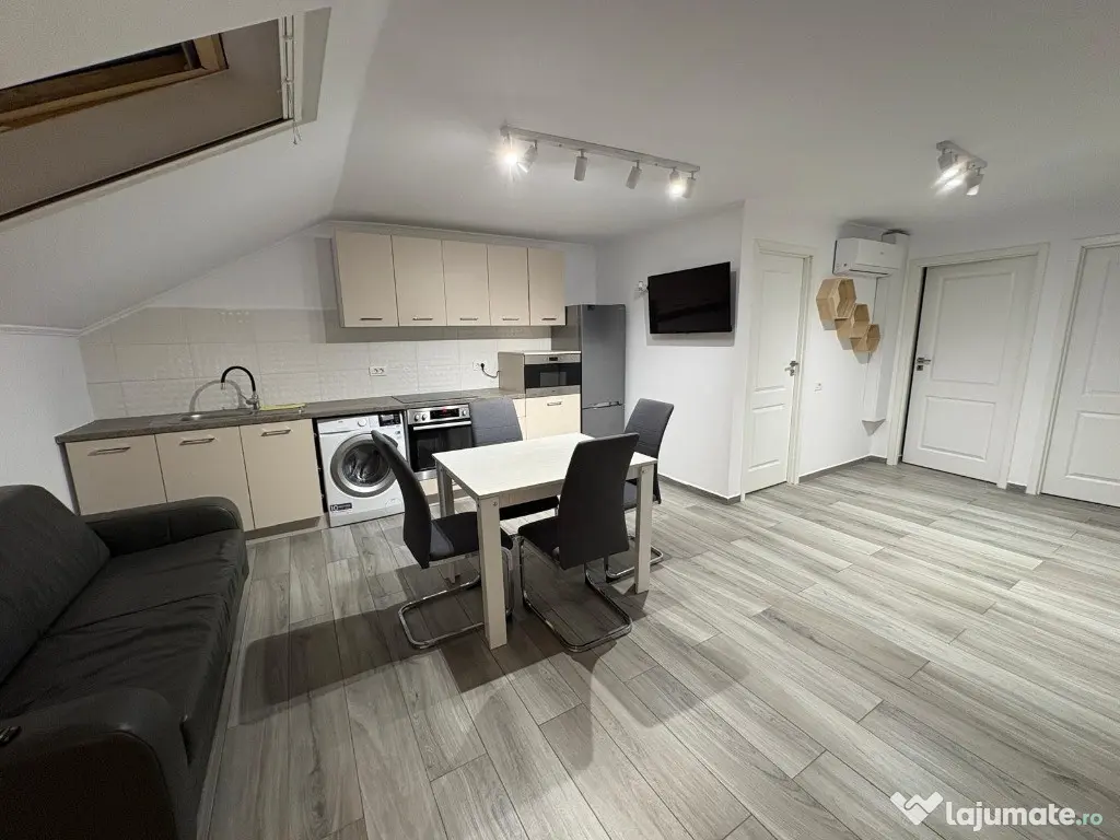 Cora Proiect Imobiliare oferă spre închiriere un apartament cu 3 camere, amenajat modern, situat într-o zonă rezidențială nouă din cartierul Grigorescu. Proprietatea se află într-un imobil recent construit, cu regim de înălțime P+E+M, ce cuprinde doar 6 apartamente, asigurând un cadru liniștit și privat. Clădirea dispune de curte interioară amenajată cu spațiu verde, zonă de grill și locuri de parcare în față.