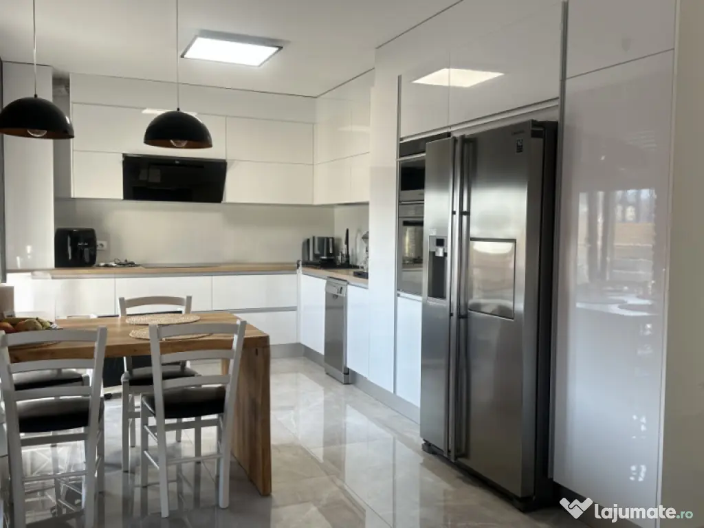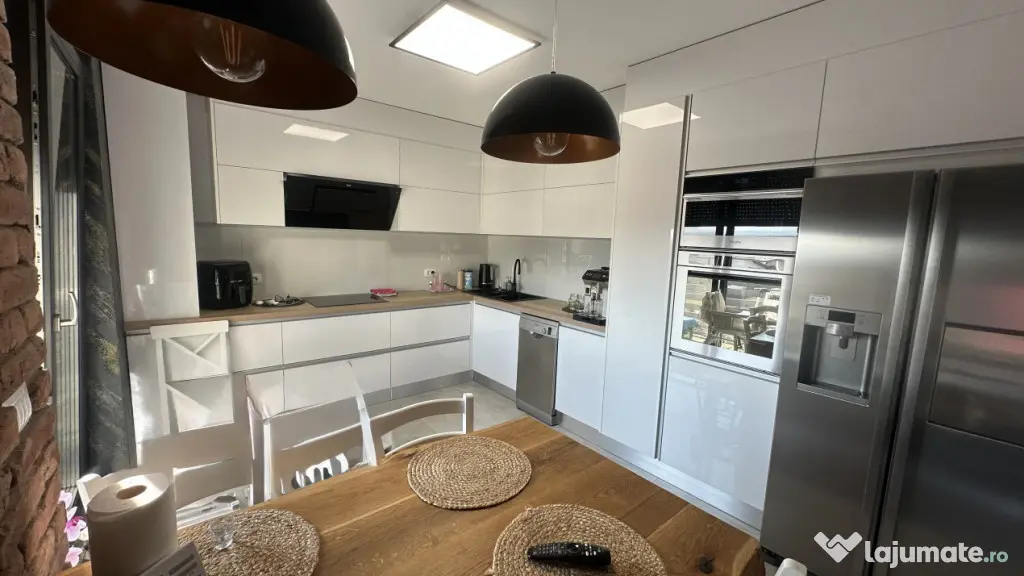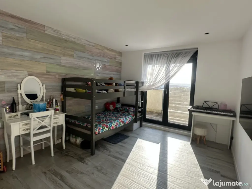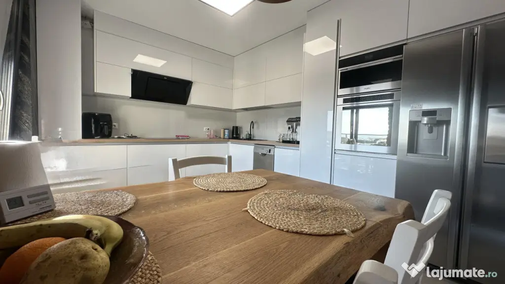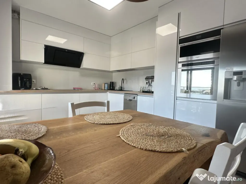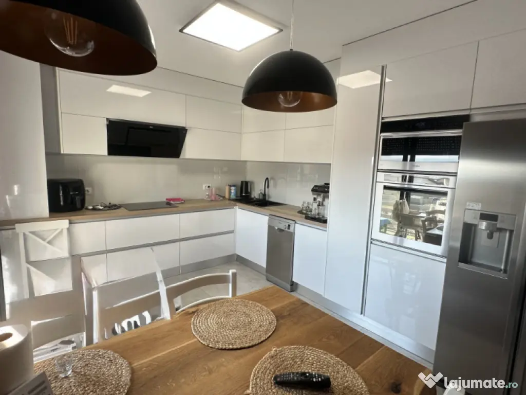 Îți prezentăm un apartament ultra-modern și complet mobilat, conceput pentru cei care caută confort, spațiu și un stil de viață premium, la un raport calitate-preț excelent. ???? Spațiu generos & compartimentare ideală Proprietatea dispune de o suprafață de 100 mp utili, la care se adaugă 60 mp de terase, fiind compusă din: living spațios cu bucătărie open-space 2 dormitoare 2 băi complet utilate ???? Terase spectaculoase & priveliște panoramică terasă de 35 mp cu acces din living a doua terasă cu acces din fiecare dormitor și bucătărie Cu panoramă către pădure și oraș, perfectă pentru relaxare. ☀️ Orientare excelentă Sud-est și vest – lumină naturală pe tot parcursul zilei. ???? Dotări premium & complet utilat frigider side-by-side cu congelator mașină de spălat vase hotă de ultimă generație grill pe terasă mașină de spălat + uscător televizoare LED în living și dormitoare ✨ Finisaje premium marmură cărămidă decorativă rulouri electrice plase de țânțari culisante ???? Parcare inclusă Curte privată cu acces automat prin telecomandă. ???? Costuri reduse & eficiență Izolație foarte bună – consum redus (gaz ~200 lei vara). ???? Preț excelent Apartamentul se vinde complet mobilat și utilat, la un preț de sub 1000 €/mp util, o oportunitate rară pentru acest nivel de dotări și suprafață. ???? Ideal atât pentru locuință proprie, cât și pentru investiție sigură. Cod ofertă / ID BLITZ: P167277 Id intern: P167277 Confort: 1 Tip imobil: Bloc de apartamente Număr Băi: 2 Nr. locuri parcare: 1