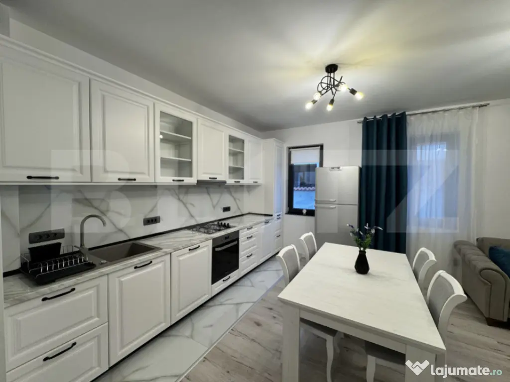Blitz oferă spre închiriere un apartament deosebit, cu 3 camere, situat în cartierul Zorilor, în apropiere de strada Mircea Eliade — locul ideal pentru cei care caută spațiu, rafinament și liniște urbană! ????✨ ???? Detalii apartament – Suprafață utilă generoasă: 90 m², într-o compartimentare atent gândită – Living open-space modern, luminos, dotat cu TV, cablu și internet – Două dormitoare confortabile, fiecare cu pat matrimonial și dulap tip dressing – Bucătărie complet utilată, cu electrocasnice premium: frigider, aragaz, cuptor, hotă, mașină de spălat vase – Două băi moderne: una dotată cu cabină de duș, iar cea principală cu cadă, bideu și spațiu special amenajat pentru întins rufele – Încălzire prin pardoseală și centrală proprie, pentru confort termic pe tot parcursul anului ✨ Dotări & avantaje premium – Finisaje de calitate superioară, realizate cu atenție la detalii – Interfon, camere de supraveghere video și senzori de mișcare pentru siguranță deplină – Imobil finalizat în 2022, cu doar două apartamente, oferind intimitate și exclusivitate – Acces controlat și loc de parcare privat în curte ???? Locație & facilități – Situat într-o zonă excelentă din Zorilor, aproape de strada Mircea Eliade – Zonă liniștită, ferită de agitație, dar cu acces rapid către principalele puncte de interes din oraș: centre comerciale, restaurante, instituții de învățământ și transport public – Apartament aflat la parterul unei vile cu un singur etaj ???? Programează o vizionare și descoperă un apartament spațios, elegant și perfect echilibrat — combinația ideală între confort, design modern și liniște urbană. Cod ofertă / ID BLITZ: P156989 Id intern: P156989 Confort: 1 Tip imobil: Casă/Vilă Număr Băi: 2 Nr. locuri parcare: 1