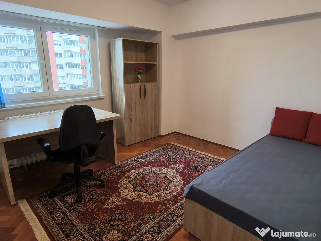 I rent a three-room apartment located on Ion Mihalache Boulevard, 3 minutes from Kiseleff Park and Victoria Square, with quick access to all the facilities in the area, to public transport, prestigious highschools, shops, markets, banks, chemist s shops, malls. The monthly rates are accessible.