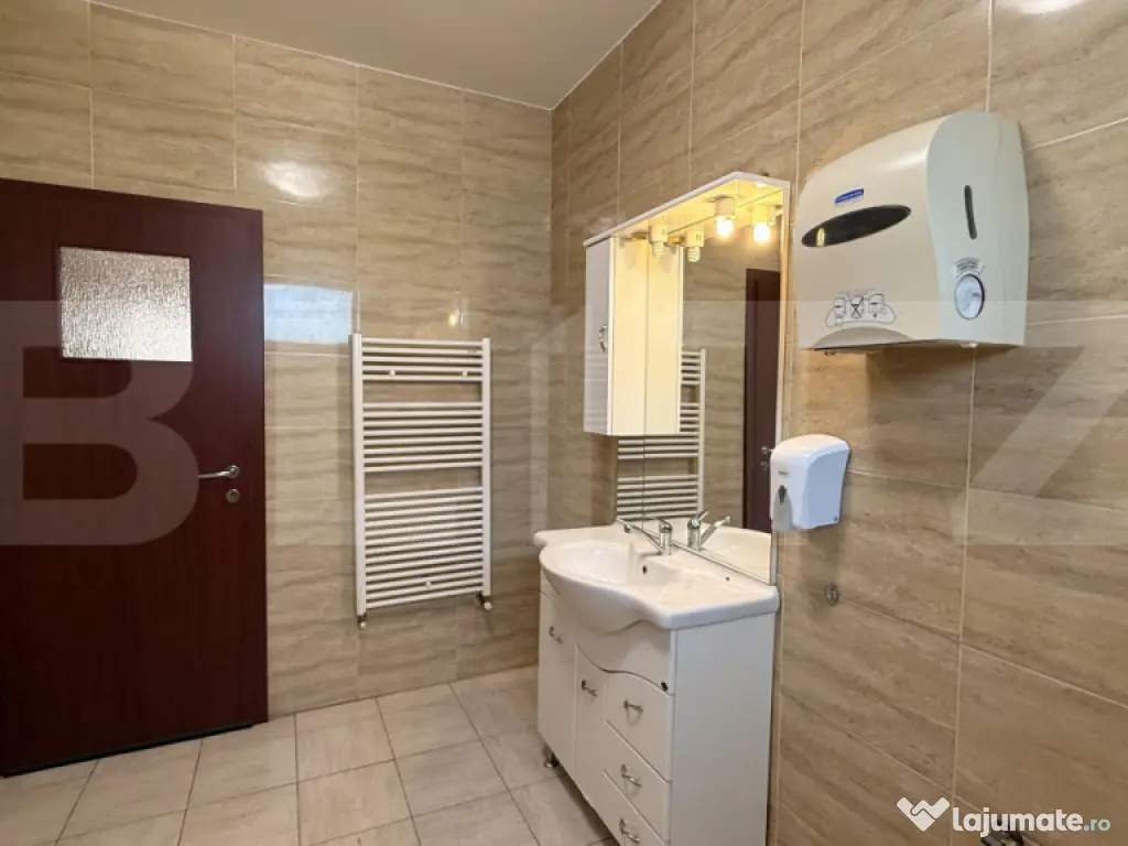 BLITZ vă propune spre vânzare un apartament cu o suprafață generoasă de 96 mp utili, situat la parter, într-un complex privat și liniștit (Ferval) din zona Ford. Proprietatea este rezultatul unirii a două garsoniere și este în prezent amenajată ca spațiu comercial, oferind multiple posibilități de utilizare. Poate fi păstrată ca spațiu de birouri, cabinet, atelier ori poate fi reconfigurată ușor într-un apartament spațios sau în două garsoniere complet independente. Imobilul beneficiază de 2 centrale termice, are două băi (una amenajată în prezent ca vestiar) și două locuri de parcare private, un mare avantaj în zonă. Datorită poziționării într-o zonă accesibilă și într-un complex privat această proprietate reprezintă o oportunitate excelentă atât pentru locuire, cât și pentru firme sau ca investiție. Te așteptăm la vizionare pentru a descoperi potențialul acestui imobil versatil! Cod ofertă / ID BLITZ: P144098 Id intern: P144098 Confort: 1 Tip imobil: Bloc de apartamente Număr Băi: 2