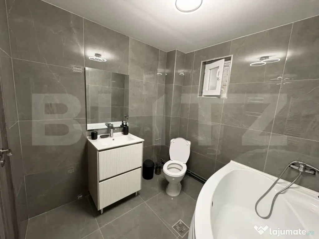Apartamentul este complet mobilat și utilat, gata pentru mutare imediată, oferind un ambient plăcut și confortabil.
