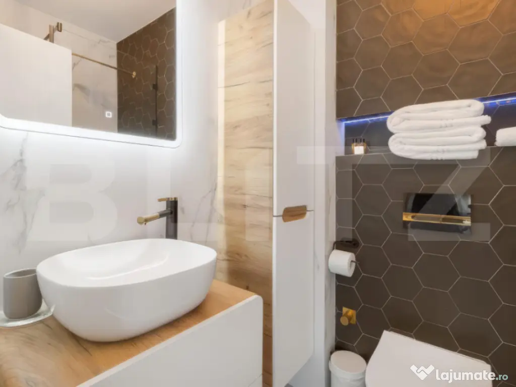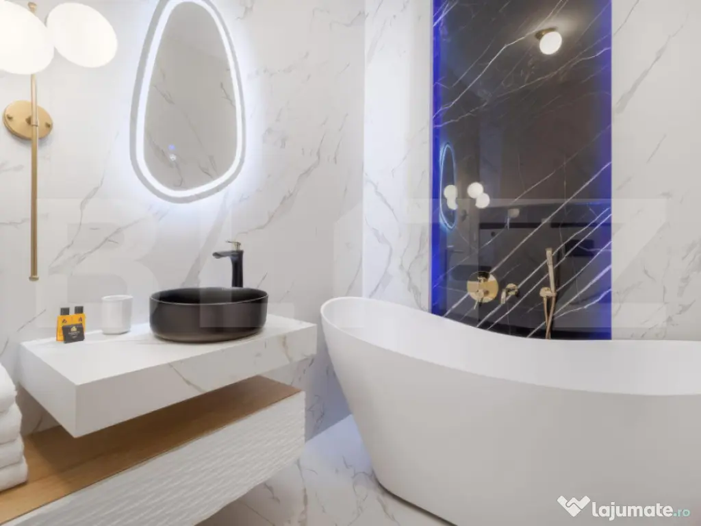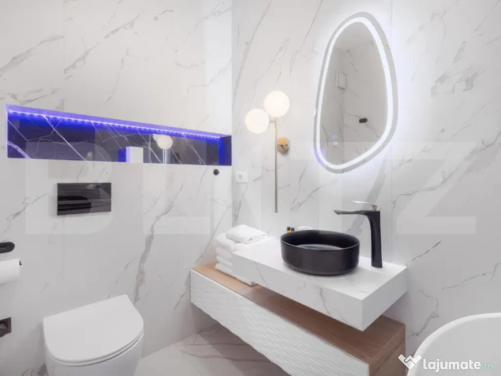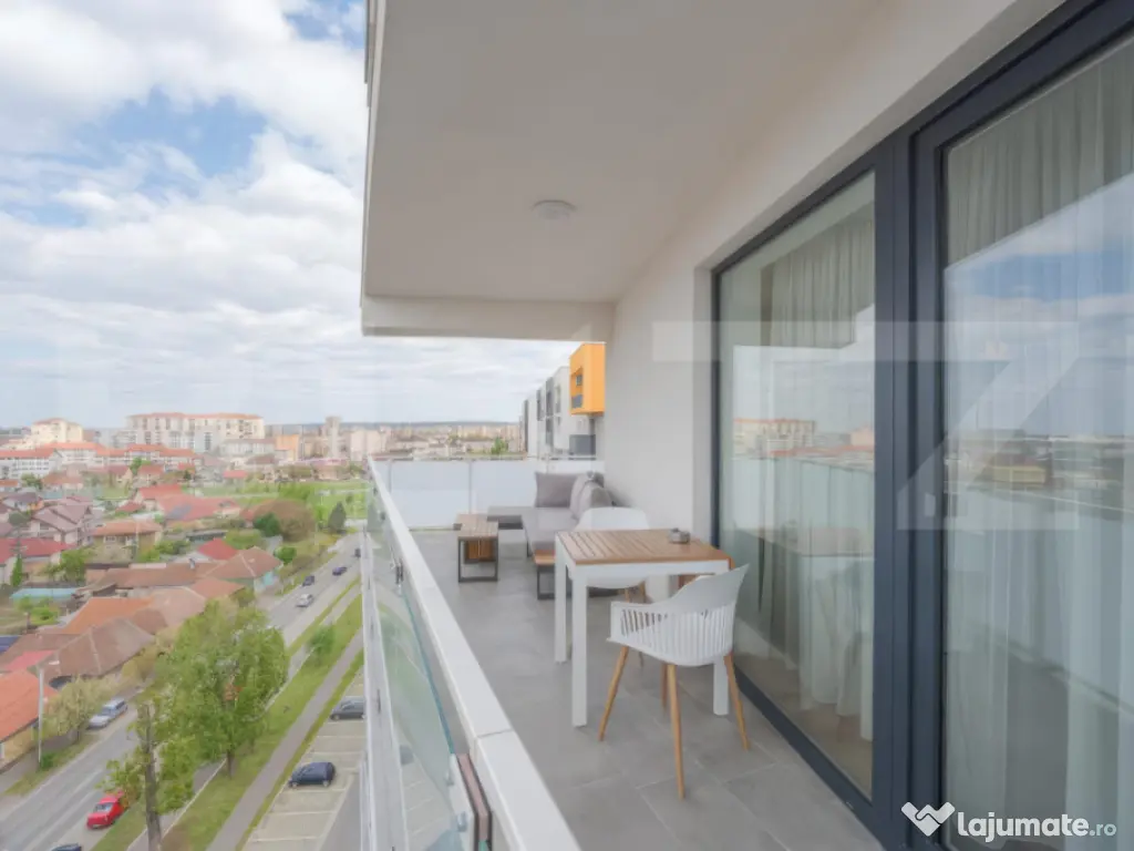 Blitz ofera apartament modern cu 3 camere, situat in complexul Prima Onestilor, la etajul 9 din 9, oferind o priveliste deschisa si multa lumina naturala. Proprietatea are o suprafata utila de 75 mp si beneficiaza de un balcon generos de aproximativ 18 mp, ideal pentru relaxare. Compartimentarea este practica, apartamentul fiind compus din living cu bucatarie, doua dormitoare si doua bai. Baia principala este dotata cu vana, iar a doua baie este de serviciu. Locuinta este amenajata modern si dispune de spatii bine organizate, potrivite pentru confortul zilnic. In pret este inclus si un loc de parcare subteran, un avantaj important in zona. Apartamentul este ideal pentru persoane care isi doresc un spatiu generos intr-un complex rezidential nou, cu acces facil catre magazine, transport si alte puncte de interes. Cod ofertă / ID BLITZ: P167003 Id intern: P167003 Confort: 1 Tip imobil: Bloc de apartamente Număr Băi: 2 Nr. locuri parcare: 1