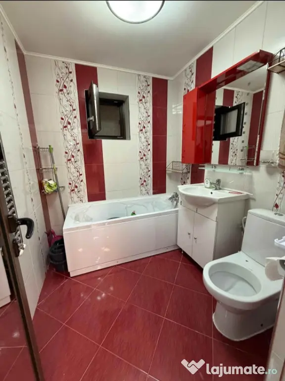 Se vinde cu bucatarie complet mobilata si utilata cu plita, cuptor si hota. Restul apartamentului partial mobilat.
