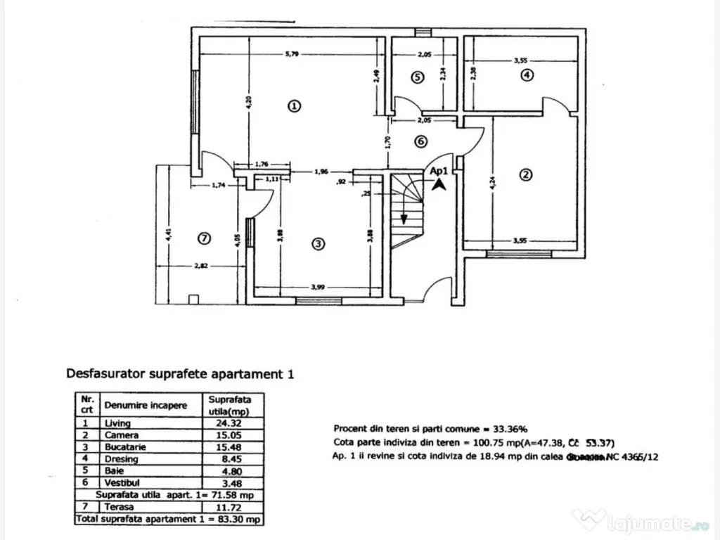 *Dimensiunile camerelor cat si compartimentarea pot fi regasite in schita atasata in rubrica foto / releveu.