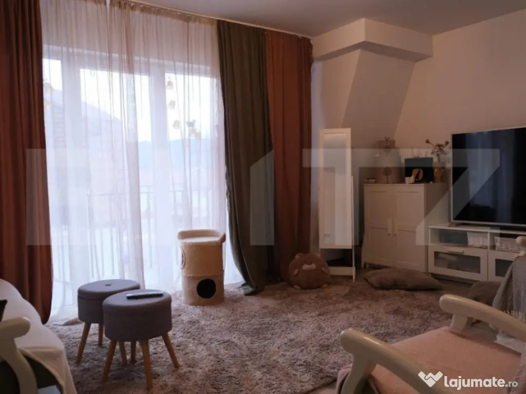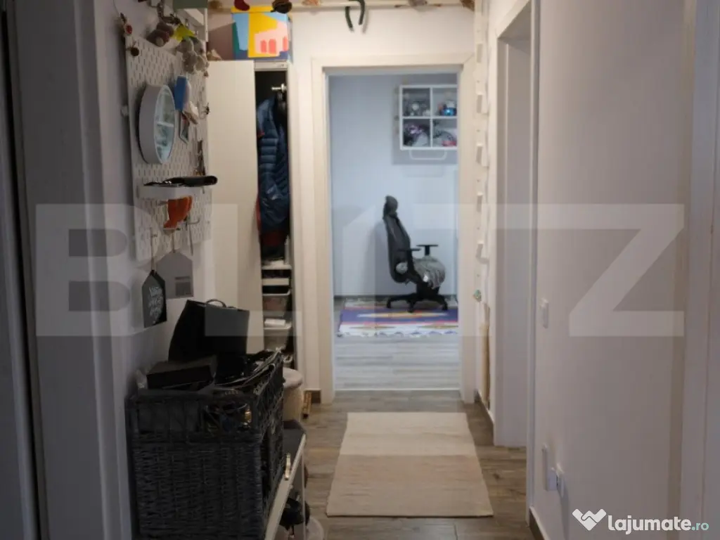 Blitz vă propune spre vânzare un apartament de 3 camere, situat în Ghimbav, la 5 minute de școală, grădiniță, multiple magazine alimentare, parcuri de joacă pentru copii, sală de fitness, cofetărie etc. Stația de autobuz se află la câteva minute distanță, iar cu mașina în 15 minute se ajunge în centrul Brașovului. Proprietatea dispune de o compartimentare decomandată, împărțirea camerelor fiind astfel: 1 dormitor matrimonial, 1 living spațios și 1 cameră transformată într-un birou pentru a beneficia de disponibilitatea de a lucra de acasă. Imobilul dispune de finisaje moderne, mobilier de calitate, culori alese cu grijă pentru o cromatică ce vă oferă intimitate și un sentiment de acasă. Suprafață utilă a apartamentului este de 75 metri pătrați astfel încât fiecare cameră dispune de eficiență și funcționalitate spațială. Cele doua băi ale apartamentului oferă confort în plus în diminețile aglomerate. Apartamentul dispune de orientare S-E astfel încât în majoritatea zilei este lumină naturala în imobil. Totodată, imobilul dispune de 2 balcoane cu vedere către munți. Pentru mai multe informații și pentru a programa o vizionare, te rugăm să ne contactezi. Cod ofertă / ID BLITZ: P93957 Id intern: P93957 Confort: 1 Tip imobil: Bloc de apartamente Număr Băi: 2 Nr. locuri parcare: 1