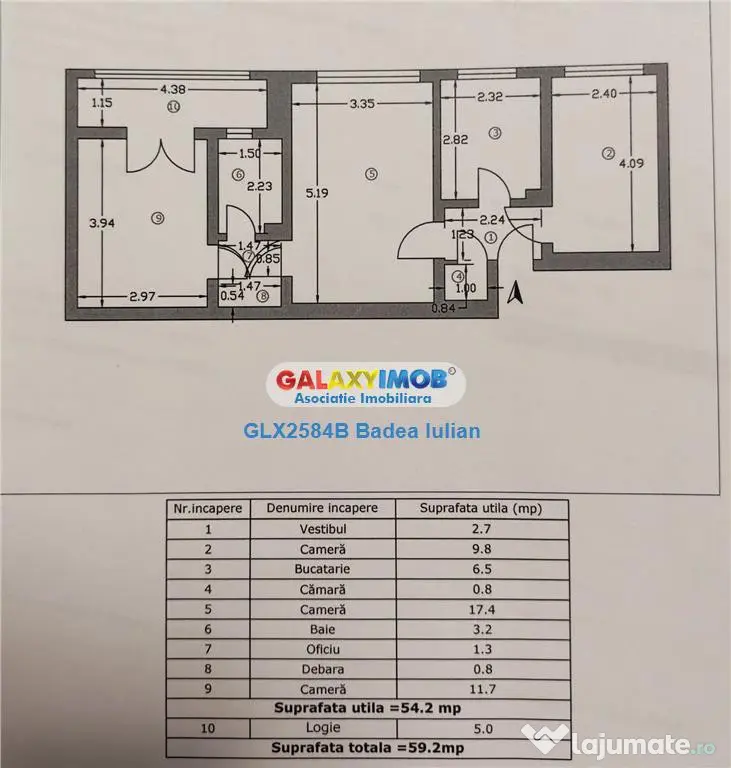 Apartamentul aflat in vanzare este foarte luminos, dispune de o suprafata de 60 mp, doar un singur dormitor este semidecomandat. Apartamentul se vinde renovat complet inclusiv cu instalatiile sanitare si electrice schimbate, toti peretii refacuti de la beton. Apartamentul este inca in curs de renovare iar termenul de finalizare este 10 Iunie.