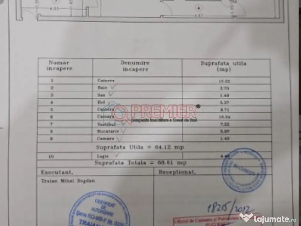Se oferă spre vânzare apartament cu 3 camere, situat în București, pe Strada Stupilor, la etajul 4 din 4, într-un imobil construit în anul 1967. ???? Suprafață utilă totală: 68,61 mp ???? Etaj: 4/4 ???? Caracteristici: Apartament complet renovat în 2024 Instalație electrică și termică schimbată integral Centrală proprie Se vinde mobilat Compartimentare practică, ideală pentru familie ???? Beneficii suplimentare: 2 locuri de parcare ???? Preț: 115.000 euro Apartamentul este ideal atât pentru locuit, cât și pentru investiție, fiind gata de mutare imediată. ???? Pentru mai multe detalii sau vizionare, nu ezitați să mă contactați! Serviciul nou oferit de PREMIER Imobiliare! Solicita acum VIZIONARE ONLINE pentru aceasta proprietate! COMISION 0% Această proprietate se poate achiziționa prin orice tip de credit bancar. Departamentul nostru financiar Premier Credit Hub vă stă la dispoziție GRATUIT (comision 0%) pentru: - identificarea celei mai bune soluții de finanțare; - întocmirea dosarului bancar complet; - obținerea rapidă a creditului necesar achiziției. Beneficiați de un serviciu ALL IN ONE, cu acces direct la ofertele tuturor băncilor comerciale din România. Se acceptă inclusiv venituri din străinătate, astfel încât fiecare client să poată cumpăra în cele mai avantajoase condiții. Solicitați acum o simulare de credit direct din anunț sau cereți detalii consultantului Premier Imobiliare! Confort: 1 Tip imobil: Bloc de apartamente Număr Băi: 1 Posibilitate parcare: Nu