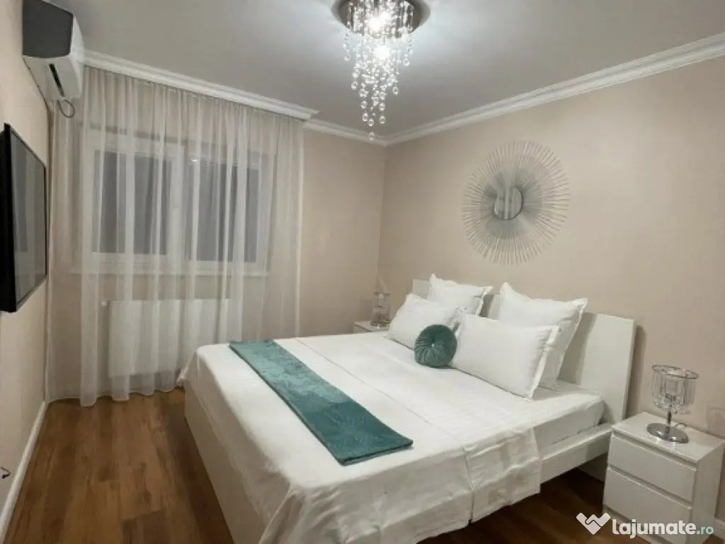 Apartament cu 3 camere lux + parcare,2 bai și balcon situat la etajul 7 aflat in zona Theodor Pallady,in complexul: Palladium Residence, este complet mobilat si utilat,dispune de centrala termica proprie cu termostat,mașina de spălat vase,mașina de spălat rufe,uscător de rufe,2 aparate de aer conditionat,3 televizoare smart. Zona este una extrem de linistita cu acces facil la mijloacele de transport in comun (metrou - statia Nicolae Teclu, tramvai - tramvaiele 23, 27 si 40, autobuz - autobuzul 246)acestea se afla la o distanta de 10 minute de mers pe jos de ansamblul rezidential. In imediata apropiere este si o zona diversificata de centre comerciale: Auchan, Jumbo, Metro, Decathlon, Ikea, Kaufland, Leroy-Merlin si Lidl. Nu sunt acceptate animalele de companie. Confort: 1 Tip imobil: Bloc de apartamente
