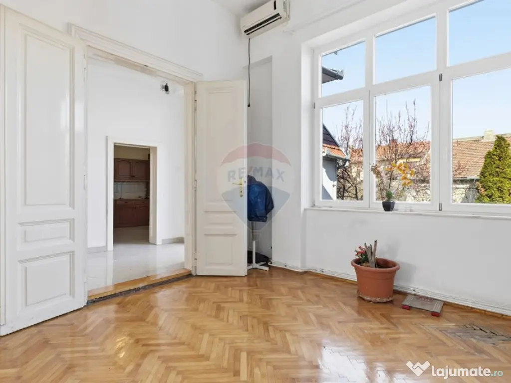RE/MAX Dynamic vǎ prezintă spre vânzare în exclusivitate, Comision 0% pentru cumpărător, apartament în zona Piața Catedralei la curte comunǎ ( 4 apartamente în total). Detalii principale: -Suprafațǎ utilǎ: 113.89 mp - Suprafață teren: 279 m² proprietate personalǎ din totalul de 724 m² - Cotǎ parte din spațiile comune Parter: - 4 camere spațioase - baie - bucǎtǎrie - loc de luat masa - hol - cămară alimente Demisol: - 7 boxe Caracteristici - Ferestre orientate atât spre strada principală, cât și spre curte – lumină naturală din plin - Încălzire eficientă prin centrală proprie pe gaz Locația centrală oferă acces facil la cafenele, restaurante, parcuri și mijloace de transport, făcând apartamentul ideal atât pentru locuit, cât și pentru un birou de prestigiu sau o investiție. Atmosfera generală combină eleganța istorică cu funcționalitatea contemporană, creând un spațiu cu personalitate distinctă. Vă așteptăm cu drag la vizionare! Confort: 1 Tip imobil: Casă/Vilă Număr Băi: 1 Posibilitate parcare: Nu