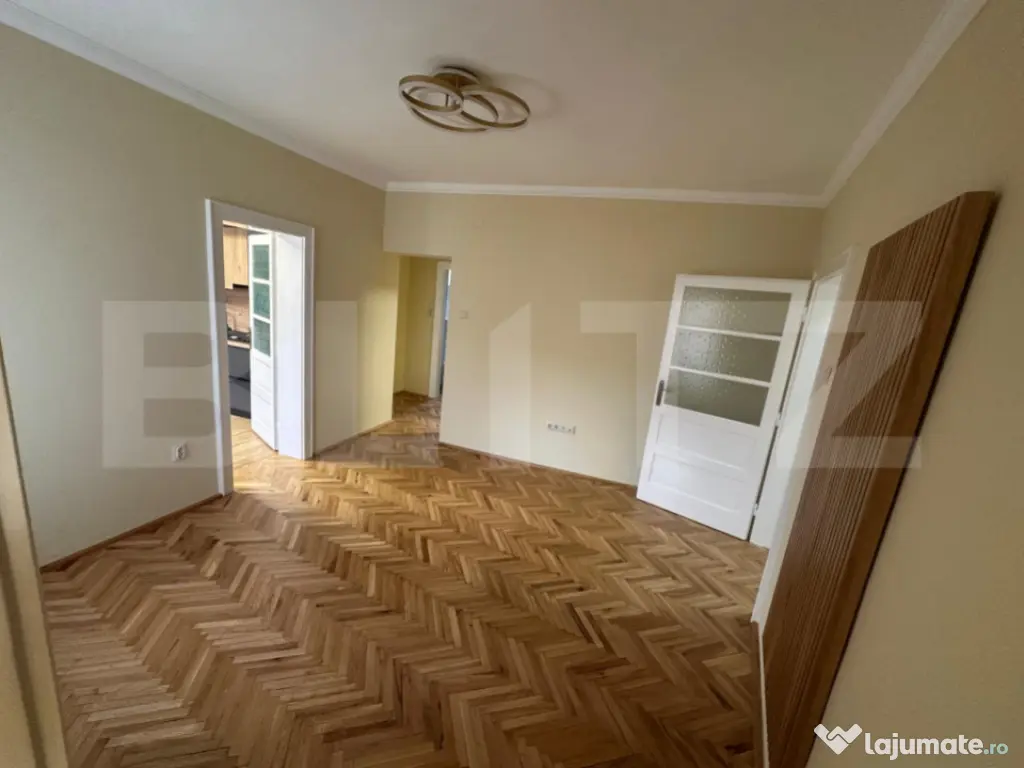 Blitz vă oferă spre închiriere un apartament generos, situat la etajul 1 al unei construcții solide din cărămidă, într-o zonă liniștită, aproape de centrul orașului.