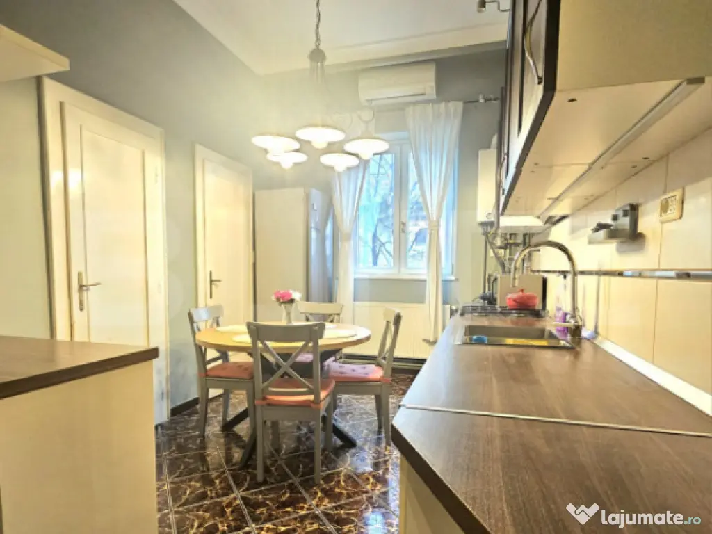 Blitz va prezinta pentru inchiriere un apartament cu caracter, situat intr-o cladire construita in anul 1930, cu regim de inaltime D+P+2. Imobilul este amplasat la etajul 1, cu doar 2 apartamente pe palier, beneficiind de o casa a scarilor curata si bine intretinuta. Localizarea este excelenta, la doar 10 minute de mers pe jos de centru si in imediata apropiere a universitatilor. Apartamentul a fost renovat in totalitate, pastrand detaliile autentice imbinate armonios cu elemente moderne, ceea ce ii confera un farmec aparte. Este PET FRIENDLY, oferind un plus de confort si libertate viitorilor chiriasi. Compartimentarea este una generoasa si functionala: -2 dormitoare -Living spatios cu acces catre balcon deschis -Bucatarie complet utilata si mobilata -Birou retras, ideal pentru lucrul de acasa -Baie principala cu cada si dus -Baie de serviciu -O incapere spatioasa pentru depozitare -Terasa acoperita, generoasa, perfecta pentru relaxare Suprafete: Suprafata utila: 130 mp Terasa: 10 mp Balcon: 3 mp Parcarea se poate face in curtea imobilului sau pe strada (TPark – zona galbena). Conditii de inchiriere: Garantie: contravaloarea unei chirii Contract minim pe o perioada de 1 an Daca v-am captat interesul si doriti mai multe detalii si o vizionare nu ezitati sa ne contactati. Cod ofertă / ID BLITZ: P163031 Id intern: P163031 Confort: 1 Tip imobil: Casă/Vilă Număr Băi: 2 Nr. locuri parcare: 1