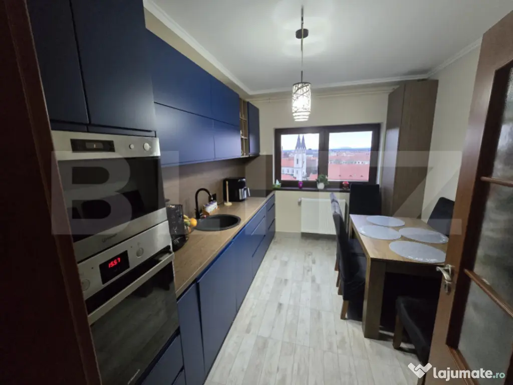 Blitz ofera spre vânzare un apartament cu 4 camere, ultra-central – Satu Mare. Apartamentul este situat la etajul 10 din 10, într-o zonă liniștită, cu acces imediat la școli, magazine, transport public și zone comerciale. Localizare: etaj 10/10, zonă liniștită, acces rapid la școli, magazine, transport public și zone comerciale. Detalii apartament: • Suprafață utilă 85 m² • Compartimentare: semi-decomandat • Camere: 4 spațioase și luminoase • Băi: 2 moderne • Balcoane: 2 cu vedere panoramică • Spații suplimentare: dressing + debara Modernizări și dotări: • Lift nou (instalat în 2024) • Izolație interioară pentru eficiență termică • Instalații sanitare și electrice schimbate acum ~6 ani • Aer condiționat Gree 12.000 BTU Smart – 2 unități • Plită și cuptor electric încorporat • Mașină de spălat vase Bosch încorporată • Mașină de spălat + uscător Samsung • Sistem de alarmă Cerber instalat pentru siguranță Avantaje: • Apartament luminos, cu vedere deschisă • Compartimentare practică • Localizare excelentă – toate facilitățile la câțiva pași • Se vinde complet utilat și modernizat • Pregătit pentru mutare imediată • Ideal pentru familie sau investiție (închiriere pe termen lung sau regim hotelier) Cod ofertă / ID BLITZ: P151675 Id intern: P151675 Confort: 1 Tip imobil: Bloc de apartamente Număr Băi: 2