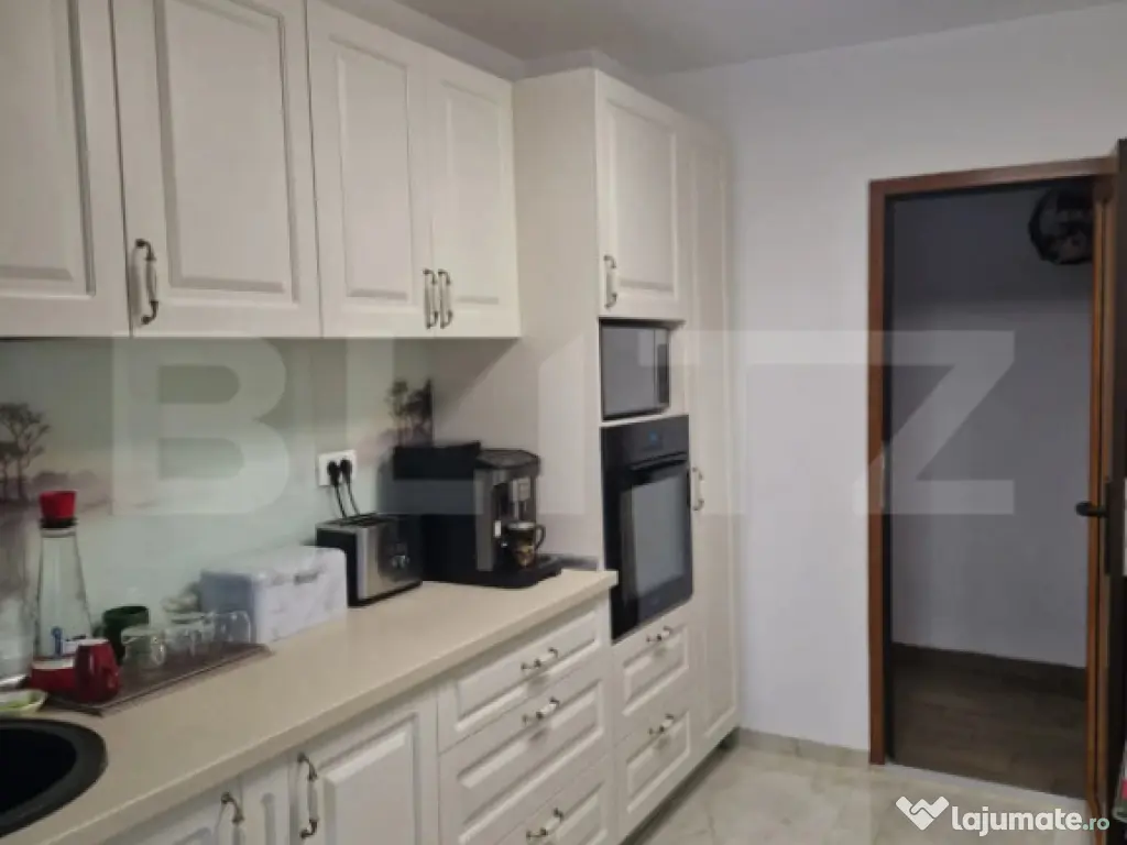 Blitz vă propune spre vanzare un apartament ideal pentru familie sau investiție, situat într-o zonă liniștită și bine conectată – Baba Dochia. Proprietatea se află la etajul 3 din 4 într-un bloc solid, curat și bine întreținut, oferind toate avantajele confortului urban. Suprafață utilă: 86 mp -4 camere decomandate una dintre ele fiind dressing sau birou -2 balcoane închise a cate 6 mp -2 băi Complet renovat: instalația electrică și cea sanitară sunt noi, schimbate integral. Încălzire prin centrală termică proprie pe gaz, cu instalație de cupru și calorifere. Camerele detin rulouri exterioare, iar balcoanele au rulouri exterioare electrice. Se vinde mobilat si utilat cu mult bun gust si atent la detalii. Apartamentul detine si 1 boxa la subsol – perfecta pentru depozitare Localizare excelentă: Zona Baba Dochia este cunoscută pentru accesibilitatea facilă, liniște și apropierea de școli, magazine, stații de transport public și alte facilități esențiale Avantaje-cheie: -Apartament luminos, bine compartimentat -Instalații complet înlocuite -Spații de depozitare generoase -Gata de mutat Nu rata ocazia de a achiziționa un apartament complet renovat, cu multiple facilități incluse! Contactează-mă pentru detalii suplimentare sau programarea unei vizionări. Cod ofertă / ID BLITZ: P163546 Id intern: P163546 Confort: 1 Tip imobil: Bloc de apartamente Număr Băi: 2
